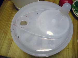 皆さん使ってますか?回転式の水切り、便利ですね。でも何でまた水切り?よく見ると・・・ポツポツと赤褐色の斑点が何だろう???テーブルにも同じようなものが少しあちこちに付着する謎の液体ゴキブリの排泄物?こんなのは今まで見たことがない。これが何であるか判明したのはその夜お風呂に入ろうと扉を開けると床に同じ斑点が!そういえば一つだけ思い当たることが・・・日曜の夜、台所の角の天井付近にいつの間にどこから入ってきたのか大きなな蛾がとまっていた。ニュースでチャドクガの被害が多いというのを見ました。幼虫の毛だけではなく成虫は飛びながら毒を撒き散らすという!この蛾はチャドクガではないけど(後にスギドクガと判明)羽ばたかせたくないのでそのままにしておきました。その夜おそく再び見てみるといない・・・再びお風呂場の続きふと見上げるとあの大きな蛾が風呂場の窓枠にとまっている!やっぱりあの蛾の排泄物だったんだ!!!スギドクガ蛾をどうにかしないと風呂に入れない殺虫剤を散布するのも飛び回って大変なことにましてやお風呂だしやっぱりハエたたき!ちょっと柄が短すぎるはずしたら顔面に飛んでくるかも?ということで柄の長い給水性のスポジの着いたモップでバシッ!ところがスポンジがやわらかく落ちてばたばた羽を広げると10センチ近くありそう、胴体は太い何とかやっつけて外へお風呂場の床には黒灰色のリン粉が・・・写真?ありませんよ!さすがに。