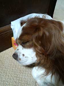 このところの話題といえば暑さほんと毎日暑い夜ぐらい涼しくなればという願いもむなしく熱帯夜・・・今日は埼玉で熱中症による死者まで出たという皆様くれぐれもご注意を!◎さてモモちゃんといえば・・・「暑くてたまらないわ」いつもの定位置、玄関のタイルで寝ても限界がワンコもエアコンのお世話になってます。