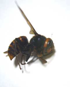 庭の空いている植木鉢を覗くと底に何かいる。よく見ると蜂の死骸アシナガバチかな?とつまんで見ると・・・それはコガタスズメバチでしたスズメバチのなかでも小型の種胴のくびれが特徴的暑さで死んだのか?アシナガバチと戦ったのか???羽を持ってモモに「ブ~ン!」と近づけると「ウゥ~」とうなって逃げてしまいました。「何するのよ!!!」モモちゃんは蜂の怖さを知ってるのかな???◎そんなモモはといえば・・・籐のいすの上でZzzzzz・・・・・「モモちゃんなんて格好して寝てるの!」