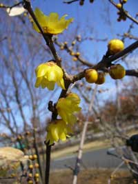 ~或る日の公園にて~先日の風強い日、隣町の公園にて。こちらでもようやくロウバイがちらほらと咲き始めた。顔を近づけると良い香りが~池に行ってみると鳥たちがいない。近づいてよく見てみると強い風を避けて池の隅にきちんと並んでいました。鳥たちの風対策!
