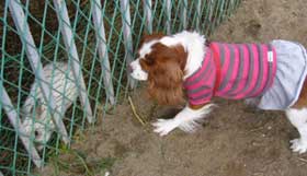~モモとお出かけ~昨日留守番をさせたモモ。今日は近くへお出かけに。良く行く隣町の公園へ「うさちゃ~ん!」大好きなウサギを見て興奮!「おいしかったわよ」「まさかモモちゃん!」道の駅では獅子舞がモモもパクパクやってもらいました♪今年初めてのホームセンターへ行くとキャバリアちゃんに遭遇!サラちゃん 6歳の女の子モモより1つお姉さん今年初めてのカート「モモちゃん何見てるの?」