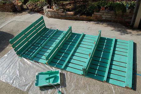 あんまり、簡単なんで・・・拍子抜けします材料は・・180×45のスノコ2枚 180×30のスノコ1枚 約90センチの角材2本 つっかえ棒 2本材料費は・・・約6.000円上等のスノコを使うと・・10.000円はかかると思います。一番右の板は・・後で使うかどうか・・思案中。 午後3時ちょっと前に始めました。この画像では桟の上に角材を置いてるけど、釘を打つ時は桟の下に角材を打ちつけたほうが見栄えが良さそうです。 これは・・棚の部分になります。 真ん中が4枚続きのスノコは 底板になり、2枚続きのスノコは棚に・・奥行きは無いけど、小物飾りだから ドリルで・・小さい釘穴を開けておく、 今日の作業はここまで・・・ ね、 簡単でしょう? 私は適当にやってるけど、みなさんは丁寧に作ってくださいね。例えば裏側にも板を当てるとか・・残りの桟にも棚をつけるとか・・真ん中あたりをカットして・・窓をつけるとか・・色々と工夫の余地があります。 明日はペンキを塗ったり、フックをつけたりして出来上がり。汚しペイントをします。 年末の忙しい時ですが、これなら作れるでしょ♪ 一ヶ月前 植物園の競り市で・・・欠けたアンティーク風鉢を500円で落札ポチっとな~♪ 明日も遊びに来てくださいね~。まってまーーす♪