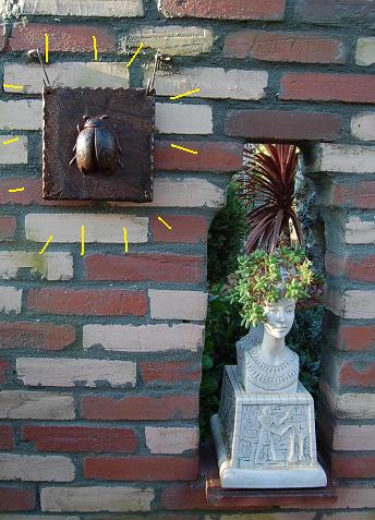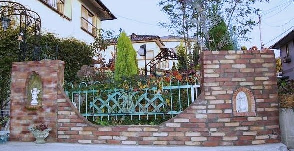 この2.3日・・書き込みへのお返事が出来ないでいます。レンガ積みでエネルギーを使い果たして・・・(言い訳)でも、楽しみに読ませて頂いています 今日も午前10時30分から始め・・・午後4時に出来上がりました。 正面から見たところ とりあえず、エジプトのお姉さんを置いてみました。・・セダムヘアです。フックも左のほうに二個つけて・・・お姉さんの上の裏側にも一個つけてます。ランプを下げられるようにね。 レンガの壁の・・横のほうに・・ちょっと可愛い雑貨もね。 レンガの壁の中に・・・アイアンの壁飾りをはめ込みました。(株)美濃クラフトの製品です。これは7年前 ガーデニング雑誌のプレゼントに応募して、ゲット 福岡のガーデニング雑誌「ベルヴュー」内容が充実していて・・・毎月楽しみにしていましたが、毎月が2ヶ月に一度になり、3ヶ月に一度になり・・・残念な事に 廃刊になりました。本当に中身が濃いので・・今でも、読み返しています。地域版のガーデニング雑誌なんて、他にあるかしら?今村編集長さん・・・又この本を発行して下さい。 夜10時前・・・カミナリがゴロゴロと鳴り始めました。外にセメントの袋をそのままにしているので、ちょっと片付けてきます。 片付けてきました。雨も丁度降り始めて今日は水を撒いていなかったのでラッキー♪ カミナリが怖いロッタ・・・震えてダッコをせがんでいますので、今日はここまで・・・ 皆さんも、レンガを積んでみませんか? 動くと変りますよ。庭・花壇作り頑張ってるな・・・と思われたら、プッシュお願いしますアイアン製品は・・使い込めば使い込むほど、あなたの庭になじんできますよ。 錆びてきたら、またそれが魅力的