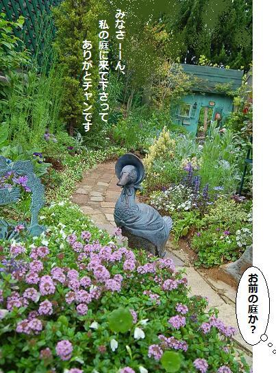 年に一度の大イベントオープンガーデンが終わって、ホッとしています。アヒルのおばさん、 今日は表まで出てきました。 今年も沢山の方に来ていただきました。私のブログを見ていて下さっていると言う方が多くて、 恥ずかしいナっ!ちゃんと、みなさんに対応できていたか、心配です。ご無礼があったらお許しくださいね。 今日は一日後片付け・・疲れが出て、久しぶりにお昼ねを2時間しました。 それより、聞いてよーーー!今朝の事、ゴミ出しの日だったのよ。催しのゴミが3袋・・大変だな、と思ってたら 珍しく、オッサンがすでに出してくれてたの。それでも あと2袋あって、自分で持って行きました。 ゴミ置き場に行くと・・・・ゴミ箱に入っていない袋が3つカラスが2羽で・・ゴミ袋を破って、食い散らかしてるの!!中身を見ると、 我が家のゴミ大慌てでカラスを追い散らし急いで家に塵取りと箒・ゴミ袋を取りに戻り、再びゴミ置き場に・・・また、カラスが悪さをしてて、追い散らし・・ゴミをかき集め・・袋に収め 大汗をかいた。 クソジジィ~~・・・・!家に帰り 「ねぇ、ゴミ箱空いてなかったん?」と怒りを抑えて、抑えて・・・聞くと「いいや、どうしてだ?」ゴミ置き場の状態を言うと・・・「悪いカラスじゃ!」 違うだろ!! ゴミ箱に入れないアンタが悪い! 二日間 吠え続けたチワワンズ オツカレーー ブルーガーデンの小花たち こぼれダネからワスレナグサが咲いてくれたので、ブルーガーデンらしくなってくれました。来春は・・庭全体にあると、いいかもしれないナァ~♪ フロックスも咲き始めました・・・風にゆらぐ様子が好きです 今年は・・寒い春なので、 ネモフィラがいつまでも元気です。 シラーカンパニュラ 年々花が大きくなっているような・・・ もどき小屋の横に・・・八重のクレマチスが咲いてました。二日間本当に暖かかったね・・オープンガーデンのためのように、前日までの寒さがウソのよう・・・ 神様、ありがとうございました。ついでに・・・今、財布の中にある宝くじの事もヨロピク あと、一週間もすると、 一番奥のラティスが白いナニワイバラでいっぱいになるよ。 オープンガーデンは終わったけど・・・私の庭は・・これから、もっと色々な花が咲き始めます。 一年で一番 嬉しくて、忙しくて 大好きな季節 5月生まれの私また一つオバチャン化が進みます。 いつも書き込みありがとうございます。お返事が中々書けないでいますが、訪問したり、応援ポチをしていますので、お許しくださいね。良かったら、お帰りにランキングバナーをポチしてくださるとヒジョーーーーーーーに喜びます。花・ガーデニング914人参加中花ブログ全体7926人参加中