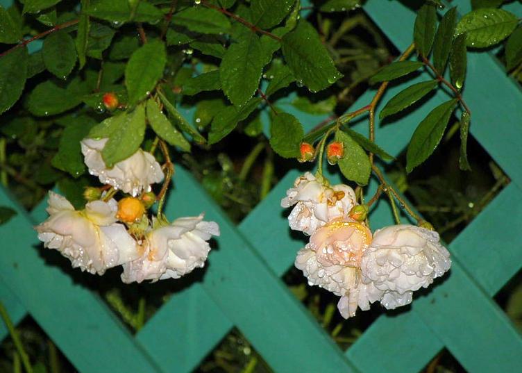 けっこうまとまった雨が降りました。でも、今の時期は・・堪忍してーー! 庭に出ると、雨に蒸れた独特の臭いがします。 せっかく、咲きそろった花たちが、雨の重さで倒れたり、花びらの首がすっかり、折れてしまったり・・ 私の気持ちも折れそうよこのフェリ・ゴンドラも折れちゃった~。 雨でダラ~ッと下がったので、麻紐でくくり、ひっぱってたら・・折れたの。もったいないので、花瓶に挿して 窓辺に飾りましたよん♪ みなさんのブログでも・・・バラがいっぱい♪私のブログも・・・バラ・バラ・バラ このフリルが可愛い・・・このままコサージにしたいな。 これは・・庭めぐりで来られた方たちに頂いたもの、 大切に育てていますよ。 ガレージのフェンスに絡んだポールズヒマラヤンムスク そして、下は アーチに絡んだ ポールズヒマラヤンムスクピンクの柔らかい色が・・本当に可愛いです。 どなたか・・・教えてください。 バラ 初心者マークの私・・・みなさん、色々教えてくださいね。 バラ咲きのインパチェンス この色は昨年 とても人気で 店に並ぶとすぐに売り切れていましたが、今年は余裕で買えるほど 数がそろっています。 今日は久しぶりに・・(二週間?) 花を買いました。明日 舟型テラコッタに寄せ植えするためです。 やっぱり、ブルースターは可愛いこの画像は・・・タイトルに使うことにしよう こうやって・・ガーデニングやブログにうつつを抜かしていられる私は幸せ。バンコクでは・・本当に大変な事になっています。国民が政府に不満を持っているために起こっている事なのか・・事情がよくわからないので、なんともいえませんが、日本は・・政府に不満を持っていても・・「誰かがナントカしてくれる」と思っているのか、私も含めて・・・誰も本気で腰を上げないですねかと・・言って、選挙で変えてくれそうな人を選ぼうと思っても・・・「誰か」の息がかかっているらしき人ばかり・・・だれも同じに見えます。 ヤワラちゃん・・・生真面目で・・何事にも一所懸命ママでも金・・・ママと柔道だけで、発揮して欲しいところです。ママと柔道と妻・・これだけでも大変な事だと思いますよ。 私は・・ガーデニングと悪妻だけで忙しいです。 今日も遊びに来てくださってありがとう。書き込みも楽しみでワクワクしながら読んでいますよ。お返事は中々かけていませんが、訪問して応援ポチさせていただいています。 ポチンよ~♪こっちでも いいよ~♪ガーデニング雑誌を枕元に置いて・・・明日の計画を立てよう。 興奮して眠れなくなっても・・知りませーーん。