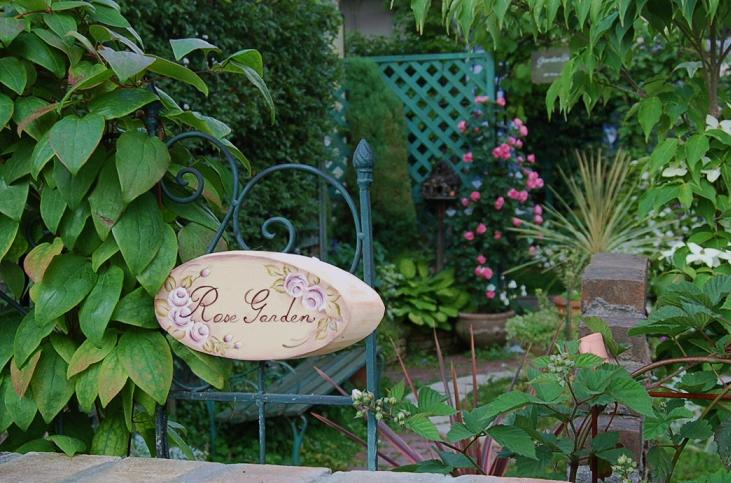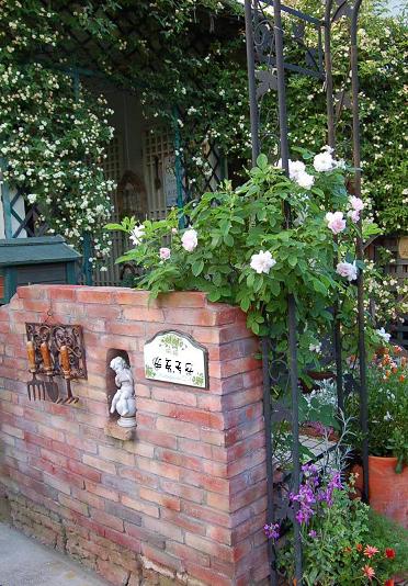今日は九州を飛び出して・・車を走らせました。途中小月インターで降りて、グリーンセンター日進で・・「渋いテラコッタ」を物色・・買いこれは明日アップしますね。 いいのがあった又、小月から高速に入り・・GO!GO!GO!!ーー約3時間で ku-utanさんのローズガーデンにたどり着きました。 ご夫婦で迎えて下さって・・ポッ相変わらず 可愛いku-utanさんに優しい旦那様 手作りのプレートも出迎えてくれました。 ku-utanさんの新築の家土地探しの時から・・ずっとブログで 見てたので・・親戚のうちを訪れるような気持ちでやってきました。山間の のどかな場所です。 遠くに例の牛さんもいました。猿も見たかったけど・・・今頃は出てこないんでしょうね。 家を建てて 1年半で・・これだけの庭を造るなんて・・すごいです。 私の庭は・・28年ですから・・・。でも、・・・ku-utanさんの庭は・・大自然を借景にしてるから・・充分 いい景色になっていますね。 このアーチをくぐっていくと・・そのまま、向こうの道につながっているような・・旦那様・・・そこまで計算して建てたのですか? 物が置けるように造って・・と旦那様に依頼したそうです。これはいいアイデアですね、私も・・ガーデン用の水道の場所に・・何か考えてみようっと 私は庭訪問をすると・・必ず何か 盗んできます。 ご注意 ku-utanさんの所で見たかったもの・・お庭と・・トールペイント作品玄関ドアのプレートピンクのバラが可愛い~ このバラ!! とっても立体的 本物みたいで・・思わず マジマジ見入りました。バラを愛してやまないku-utanさんだからこその・・作品です。近かったら・・習いたいな。他にもたくさん作品がありましたが・・・* ku_utan *さん のブログで見てくださいね。 室内の飾り方も・・おしゃれで可愛い~ こんな縦長の窓があったらなぁ~・・ウラヤマシぃ 旦那様がハーブティや入れてくださったり、ku-utanさんが夕べ作ったというシフォンケーキをご馳走になったり・・今日はとても幸せでした。 この後、船方農場に連れて行ってもらいました。温室の中では・・バラ苗やハーブ苗が売っていたり・・天井にはぶどう棚があり、その下では・・レストランがあったり・・ガーデンカフェになっています。バラの壁があったり・・・ レストランの囲いの下には・・グリーンの植栽があったり・・ステキ、 レジ・受付の横には・・レンガで囲んだ・・手洗い場?やっぱり・・ここも 物が置けるようにしていますね。 ku-utanさん、 今日は本当にありがとうございました。バタバタと・・引き上げてしまいましたがまた来春 ・・ゆっくりとおじゃまさせていただきますね。 昨日も沢山の 書き込みありがとうございます。お返事出来てないけど、私も訪問してポチさせていただいています。良かったら、お帰りに応援お願いしまーーす花ブログお腹を ポチンよ~♪