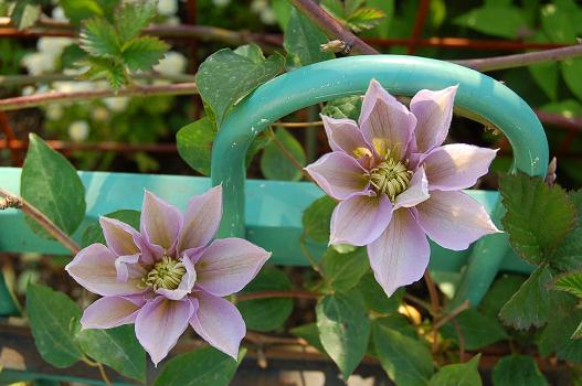 毎日、庭に出ると、昨日とは違った顔がある。昨日まで蕾だった花が咲いてるのを見ると、ホント、 嬉しいわぁ~ クレマチスは、7.8種類あるが、中でも これが一番好き淡い紫色 洋服の胸や帽子につけたくなります。 もどき小屋の前には白いクレマチス(八重) 九州は冬でも、何か花が咲いているけど・・・それでも、春の花の勢い、美しさには 感動する。 ラムズイヤー このフェルトのような 柔らかさが好き、花は見なくていいの。 ちょっと、奥まった場所には・・白い花を植えるようにしています。 5ミリくらいの花です。 名札は庭にあります、 明日、思い出したら・・庭に見に行って、書きます(・・と思う) 私は今まで、何年もバラを育てて来たけど、モッコウバラ以外の事ね、いつも病気や虫で・・綺麗に咲かせた事がありません。薬、時々市販のものをスプレーするくらいでした。ブログ友達の所や、花仲間のところで 綺麗な葉を見るにつけ・・「どうしたら・・こんなに綺麗に咲かせられるんだろう?」 バラは難しいこの思いだけしかありませんでした。 所が、今年は・・・葉が綺麗で、蕾も虫にやられずにきれいなんです!!ポールズヒマラヤンムスク も蕾がいっぱいです。 レオナルドダヴィンチも本当に健康です、昨年の今ごろなら、蕾がいきなり、クタッとなったり、アブラムシがいっぱい付いていたりしてたのに、ホットココアも健康で、開花が楽しみです。 やっぱり、予防対策が良かったんだと思います。 こんなに、健康に育てられたのは・・・アグリチンキ36 200ml 農薬ではありません。これを毎週 散布して、時々、別の薬も間で散布しているからかもね。 バラを上手に咲かせている方から、聞いたのですが、いつも同じ薬では・・効き目がなくなるので、時々変えたほうがいいらしい・・・。 それから、バラの根元を・・焼きモミガラで覆ってみたり・・くるカラも置いて・・・やれるだけの事をやっているので、 本当は何が一番良かったのか、正直、わかんないです。もしかすると・・・「いつまでも寒い春」 が良かったりして・・・ それから、いつも・・うどん粉病でだめになるバーベナ、今年は植えています。バラに薬を散布する時、バーベナにもやっています。今年は綺麗に咲いてくれそうです、 バラを育てるのに・・・他に・・何がいいのか、教えてくださいね。まだまだ、バラ初心者の私です。お導きを~~~ 中々お返事出来てませんけど、楽しみに読ませて頂いています。良かったら、お帰りに応援ポチをお願いしまーーす花・ガーデニング914人参加中花ブログ全体7926人参加中