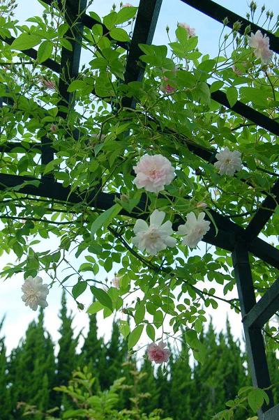 ガーデニング歴・・・30年以上と経験は長い私 なのに!!今日までに何度も・・何本も・・バラを育ててきましたが・・一度として・・病気にならずに 咲かせたことがない!! キッバリ!! ブログ友達の ブログで綺麗に咲かせている様子を見たり、花友達のところで・・健康的に・・元気に育ててるのを見ても、羨ましいなぁ~・・でも、私には絶対に無理、とあきらめてきました。今年は早めに病気・病害虫の予防に アグリチンキを散布したり、その翌週には・・違う薬を散布していたら・・・蕾のつきは良いし、・・葉っぱの艶はいいし・・虫もついていない! でも、本当は何が良かったのかバラが私の庭で美しく咲いているなんて、初めての事! きっと、バラに目覚めたんだと思う。 つるバラ 花見川 毎日、ガーデニングのお仕事で・・クタクタに疲れて帰宅・・・ でも、朝よりも花数が増えたバラたちを見ると、嬉しくて家の中には入らずに・・しばし 庭を散策・・・プリンス オブ ザ ウェールズこの気品のあるバラ・・・淡いピンク 花びらの形 もう大好きいいとこのお坊ちゃんがうちに遊びに来てるみたい~♪ 白のミニバラ・・・レンゲ咲き 名前不明この鉢に植えて・・3年になりますが・・・植え替えたほうがいいのかしら? バラって、冬に根っこを洗ったりしてるけど、・・これもそうしたほうがいいのかな?。フェリ・ゴンドラ一昨年の今頃買ったバラ・・・今年はすごい事になりそうよラティス一面に広がって、蕾がいっぱいです。 斑入り野ブドウ 春の競り市で落札したんだけど・・意外と可愛い~ ぶどう というからには・・・実がつくのを期待したいけど・・・どう? だれか知ってる? 西武ドームでバラとガーデニングショーが開催されていたり、近くでは若松のグリーンパークでは「バラフェア」が・・・日帰りでも・・行きたいけど・・毎日 他所のガーデンで這いつくばっています。 本当は自分の庭だけで・・頑張りたいけど、頼まれたら・・断れない性分やる以上・・ついつい、張り切ってしまう性分よって・・・ 疲れ切って 何も出来ず 家の中は雑然としています。洗濯物をたたむヒマが(その気が・・)ない。 しわくちゃでも ま、死ぬわけじゃないし・・悪妻バンザーーイ 明日はお仕事 一旦休みホッ アイロンがけして たたみまするぅ~。 今日は疲れたので バタンキュー!ブログの更新はするけどね。 いつも書き込みありがとうございます。お返事出来てないけど、私も訪問してポチさせていただいています。良かったら、お帰りに応援お願いしまーーす花・ガーデニング花ブログ