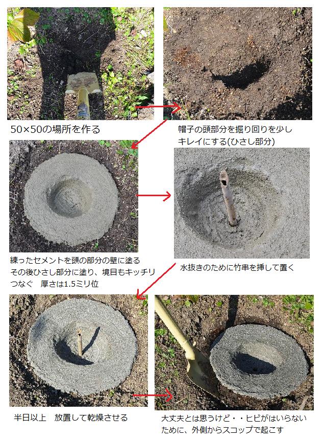 21日の趣味の園芸を見たときに・・・アッ、これ以前に・・ガーデニング雑誌で見た手作りテラコッタのやり方で出来るのでは?・・・ と、思い やってみました。 とっても簡単ですよ。 まず・・・土のある場所を見つけてください。(掘れる場所ね、)セメントの厚さが薄いと・・・割れる心配があります 私はこんなふうにして 作りましたけど、本当の作り方は・・・違うかもしれません。それに・・ちょっと、大きすぎたかもね、帽子の型でなくても・・・タダの丸い器でも面白いと思います。貴方しだいで・・ナチュラルな雑貨が作れそうですよ。舟形テラコッタだって・・・作れるぞ!! 小さな物とか・・・多肉植物植えるのだったらいびつな形のほうが、似合いそうよ、ネッ それから・・私がセメントで・・レンガ積みをする時の道具です。 後は、インスタントセメントと・・セメントを練るスコップレンガを叩く時、レンガを割らないためゴムハンマーがいいです。ハンマーは・・レンガを割る時に一発で割るため・・・適当です。 今日は・・裸のオネエサンの身体と水槽を洗って、久しぶりに水を循環させています。 ぺちゃパイだニャ・・・他人の事言えないけど・・・ 今日は早めの更新 珍しい・・。 今夜再放送の「趣味の園芸」がNHK教育9時~9時25分までですが、手作り雑貨の事は・・たぶん後のほうです。 間違いなければ・・・ コメント 毎日楽しみに読ませていただいています。お返事はかけてませんが、あなたのブログを訪問させてくださいね。楽天以外の方も・・ブログを持っていたら教えてくださいね。 貴方の応援が、明日の活力になっています。よろしくねポチっとね こっちもねいつもありがとうございまーーす♪ ガーデニングアンケートにも参加してみてね、http://blog.with2.net/vote/?m=v&id=52860 ナチュラルガーデニング(vol.7)年間購読もお勧めです、
