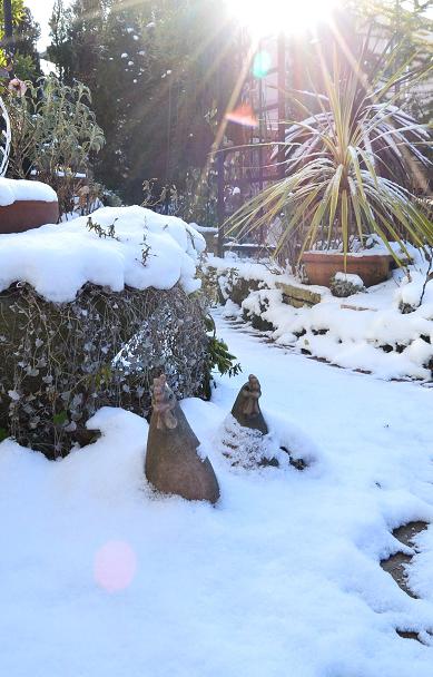 もう、結構です!!・・・ 雪も寒さも・・もういいよ、なんて、言ったら豪雪地帯の方に叱られるかもしれませんね。 九州で・・これだけの寒さが続くなんて・・子供の頃以来ですよ。 これじゃあ・・・庭の花苗もみんな傷んでしまいそうです。 僕は・・・雪って、好きだよ 小さなメダカ池のために・・ポタポタと・・水をたらしていたけど今朝は凍りついてしまいました。 でも、雪が積もると・・何気ない景色が・・ちょっとだけ 絵になってるね。 夕方には・・お日様が当る場所は解けてなくなりました。 後ろの土手を少しずつ耕して、花苗を植えられる状態にしています。今週はこれから晴れの日が続きそうなので、土手ガーデンを本格的に手を入れる予定です。 庭仕事をした後は・・熱い湯で溶いた・・コッツウォルド ハニーを飲みます。昨年6月に行った時に買ったものですが、最近開封したんです。ネットで検索したら・・今では とても高価で手に入りにくくなってるそう、きめ細かい・・舌触り とても上品な味わいです。もっと、沢山買えばよかったなぁ・・・小さなミツバチ達が・・あの美しいガーデンを飛び回り集めてきた 花の蜜ですから。 世界中のガーデナーがあこがれる蜂蜜色の街 そんなガーデニングの国イギリスご自慢のお庭でじっくり丁寧につくられた「コッツウォルドハニー」はイギリスで1番おいしい蜂蜜としてコッツウォルズ地方の名産品となっている。「コッツウォルドハニー」はうっとりするほどトロリとおいしい蜂蜜ですが、味が豊かなだけではなく、ビタミン、ミネラル、アミノ酸に酵素、免疫力を高める花粉を含有しており、栄養的にも満点!手作業のため、もともと生産出来る量に限りがある上、その豊穣にして芳醇な味に魅せられた世界中のセレブたちがお金にものを言わせて買い占めるため?イギリスでも入手困難だそう。見つけたら、絶対に「買い」です!ANAの旅の口コミ情報サイトより抜粋アラブの石油王が買い占めているという噂もあります。 私が買った蜂蜜は・・スードリー・カースル・ガーデンここの入り口付近にある売店で買いました。そこに到着した時、土砂降りの雨になって・・私は傘も持っていないし、疲れきっていたので、私とSさんは・・売店に残り・・みんなが見てくるのを待っていたんです。帰国して宇藤カザンさんのサイトでスードリー・カースル・ガーデンを見てから・・土砂降りの雨でも 見ておけばよかったと後悔しきりです。 はい・・ではまたしつこく、 コッツウォルズの画像をSDカードから探してきました。 キフツゲートガーデン 見たことがない 植物です。 画像・・でか過ぎですけど・・花が無い冬ですから・・大サービスサイズです。 宇藤カザンさんのサイトを見ると、益々コッツウォルズに行きたくなりますよ。素敵な画像がいっぱいですよ、ぜひ訪問してみて下さいね。 http://www.kazanuto.com/ お帰りに下のバナーを押していただけると沢山の素敵なガーデンブログに出会えますよ。時々サボってますが どちらも 1位です。 みなさんの応援のおかけです。本当にいつもありがとうございまーーす♪