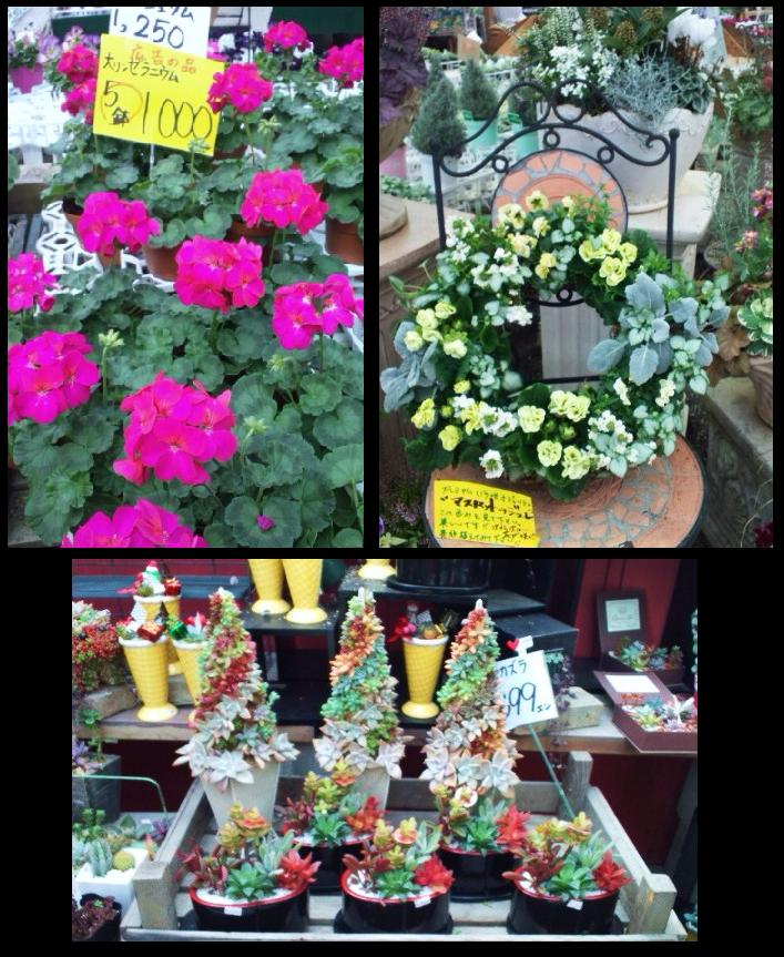 今日は・・花屋さんに行ってきました。庭に色が無くて、寂しいから・・・ 元気になる色を探しに・・ね。 ゼラニュームが5鉢・・1000円って、凄く安い、もちろん・・5鉢買って来ました。 下の画像は・・携帯で店内をうつしたもの・・・多肉タワーも欲しかったなぁ・・ 私が昔・・「園芸」をしていた頃は ゼラニュームを色々と集めたり・・挿し木をして増やすのが面白くて・・・家の周りはゼラニュームがいっぱいでした。 言葉の意味は同じかも知れないけど・・・園芸と・・ガーデニングは・・違うような気がすると思わない? 園芸は 種類とか多く持って、とにかく・・所狭しと色とりどりに・・草花があふれまくっているいたような、園芸雑誌の春の庭は・・黄・赤・紫のパンジーやチューリップ・芝桜などばかり20年前の 私の庭がまさに・・・それだったな、 ガーデニングと言うと・・庭にストーリー性があって、小道があったり・・花も・・色彩を考えて植えたりして、・・ くつろげる場所かな。 多肉は・・癒しこのツヤツヤ、プリプリしたのを見ると・・「愛いやつじゃ~」 ・・にんまりします。 今夜は又、大根ステーキにしました。オリーブオイルでジィジィ~っと焼くだけキツネ色に焼いた大根に・・おろしを載せ、ドレッシングをかけるだけよ。あんまり、美味しくて・・5枚も食べて 大根だけで おなかいっぱい、変な組み合わせだけど・・・・ タマゴ酒を飲みながら 食べたんです。私は子供の時から・・タマゴ酒が大好きでした。風邪をひくと・・母が作ってくれてたんだけど・・ちょっと、大きくなってからは・・風邪をひかなくても・・時々、自分で作って・・親に隠れて 飲んでました。家業が養鶏だったので・・タマゴは売るほどあるし・・・売ってたしお酒は・・両親が飲まないので・・お歳暮にもらったのが減らないで・・いつまでもあったし・・。 私、 小学低学年の時に・・・肉屋のかわべさんにお酒を飲まされてたんです。・・親は知らない。肉屋のかわべさんは・・少々アル中気味で・・・鶏を買いに来ては・・上がりこんで酒を持ち込みいつまでも飲んでたの、私の父親は下戸で・・仕事もあるし・・かわべさんの相手が出来ないし・・「じょうちゃん・・ここにおいで」・・と私を相手に飲んでたよ。コップの底に少しだけ・・入れてくれるの・・、お小遣いもくれました。 しまいには・・・かわべさんの奥さんが怒って迎えに来てました。うちの親も2.30羽、鶏を買ってくれるお得意さんだったので・・何も言えなかったんでしょうね。 そうそう・・親戚のおじさんとか、かわべさんにお年玉やお小遣いをもらっても・・全然・・子供の私が使った覚えが無いのは何故? 子供の頃のお年玉って・・50円玉、100円札だったな。 いつも書き込みありがとうございます。お返事出来てないけど、私も訪問させていただいています。良かったら、お帰りに応援ポチをお願いしまーーす2011年のガーデニング目標、アンケートです。http://blog.with2.net/vote/?m=v&id=56480コメントも書いてくださると・・とっても嬉しいです。 沖縄の花々をテーマにガーデンカフェをオープンさせ、全国のガーデニングファンに来ていただく!目標! (女性/40代/沖縄) いいですね~・・開店したらお知らせください。きっと、行きますよ~。ブルーミント5