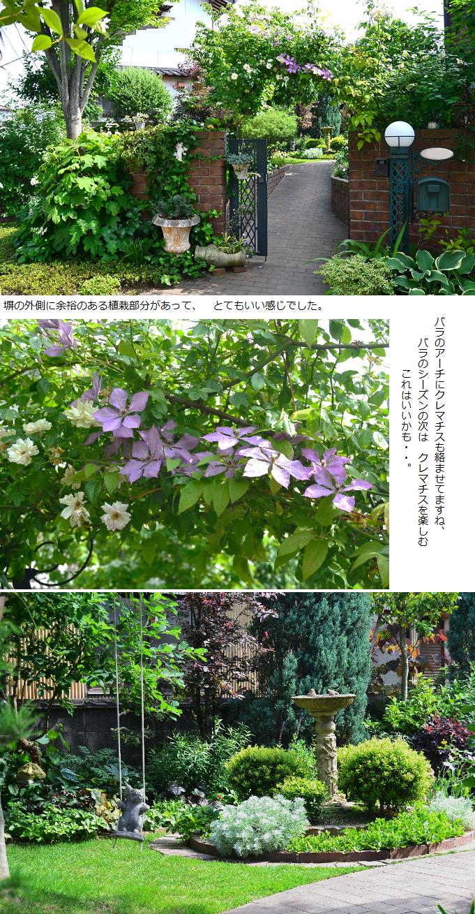 今日もいいお天気ですね。あんまり日差しが強すぎて、外に出る気がしません。太陽にあたるだけで・・疲れるって、ありますよね。たぶん、若くないって事ね、そうそう・・・今日BSでロードショーを見てたんだけど、何言ってんだか・・ちっとも聞こえないの、それでテレビの音量を40位にしたら、なんとか聞こえるのね、私もいよいよ補聴器のお世話になるのか・・と思ったのよ、でも、CMになったら 大音量になって、あわてていつもの20に戻したわ、CMの時、大きくするのは、スポンサーの圧力か? 途中で見るのが嫌になって、チャンネルを変えたよ。私も確かに聞き取りが悪くなってるのはあるはい、雑談でした。 29日のお庭訪問の日もとてもいいお天気で暑かったわ、4件目は・・Zさんが手がけた・・娘さんのお宅のgardenこんなセンスの良いお母さんが居て、幸せですね。 門扉の上にクレマチスのアーチ、そこを抜けると、ブタさんのブランコ 本当によく お手入れされています。 色々と珍しい花にも出会えました。 次は・・・T邸gardenバラをこよなく愛しているTさん、バラが一番美しく見える植栽をしています。 バラのシーズンは終わってましたが まだまだ美しいローズガーデンでした。 どのお宅のオーナさんも、花の配置にこだわって植えてました。そして、スラスラと 難しい花の名前が飛び出してきます。みんな 私よりもオネエサンなのに、ま、ま、負けた~私はすぐに忘れるから・・・名前を覚える気が無い、 そんな私の今日のgardenを見てね、 ラバテラが咲き始めました こぼれ種からの宿根リナリア これで一株 土手ガーデン ようやく好みのガーデンになってきたが、もう少し、ジキタリスや千鳥草・デルフィニュームが欲しいわね。 これからのお手入れは・・・雑草取りと、茂りすぎた植物の間引きカット、植えた時は隙間だらけだったけど、今は小さな植物を覆い隠すほど茂ってる抜くか、カットするか・・思いっきりが大切、欲張ってそのままにしておくと、だらけた庭になってくる。 ・・・なんて書くと、その通りにしてると思われるけど、今はだらけた庭だよ~ン、有言不実行にならないように 書いてるの! 今までこれで・・やってないままの事も沢山ある・・ま・いっか♪ それから先日の777777のカウントプレゼントですが、7名の方、もうちょっと待ってね、 6月7日ごろまでにはなんとかお送りできればと思ってます。 お庭巡りのレポ 良かったなと思ったらポチッと応援よろしくね♪おねだりロッタ ありがとーー♪