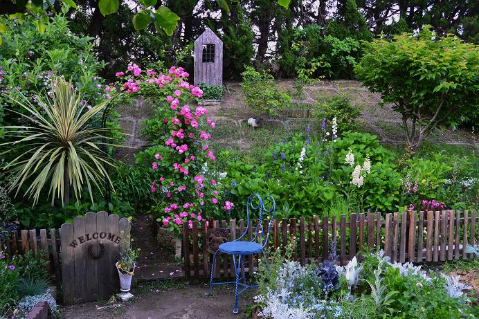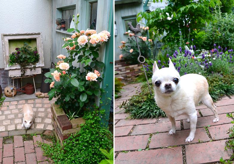 沢山のコメントありがとうございます。 実はコメント読むのに・・とても勇気が要りました張り裂けそうな気持ちが更に強くなるのでは・・と思って昼間も・・つい二日前の元気なヒメを思い出しては、苦しくなったり、家に居るのも辛くて・・外出 ロッタが寂しがっているのではと思い、外出してても落ち着きません。 コメントを読むのが辛いから・・コメント欄を閉じようかとオッサンに言ったら、「みんなお前の事を思って書いてくれてるんじゃないか、そのままにしておけ」と言います そして、勇気を出し皆さんのコメントを読んで 良かった・・・同じ体験をされた方の言葉に気持ちが軽くなりました。 ありがとうございます。途中涙で・・字が見えなくなりましたので、 後はまた読みます。 いつになったら・・悲しみが消えるかわかりませんが、ブログはいつもの ブルーミントらしく 明るく楽しいブログに切り替えます、 さて、オープンガーデンが終わった庭は・・・ますます、綺麗になってきました。「オープンガーデンは終わりました」という看板を見ても、庭が消えてるわけではなく、綺麗な庭が目の前にあるので、敷地内をウロウロする人々・・・見たくなる気持ちはわかりますが、しばらくは静かに過ごしたいわ。 買ってきた苗をすぐに植えない時は・・荷車に載せて オブジェにしてるの、 珍しく早起きして、庭をウロウロ・・まだ夜が明けたばかりだから暗い 柳のように垂れるミニバラ 「ゆきあかり」 以前はフェンス+ラティスに囲まれていた庭、取り外して本当に良かった 手入れしやすくなったし、木々のためにも良いフェンスにどんな意味があったんだろう?と思う。泥棒よけ? 1メートルの高さなんて、どうでもなるわよね、このほうが・・余程入りにくいと思うんだけど、 ヘンリーヅタがこんもりとレンガの壁を覆ってます。こんな小さな庭を見るために・・・北は茨城、南は鹿児島から・・沢山の方が起こしくださいました。 花・植物は人を惹きつける魅力があるんですね。客が来なくて困っている 観光地など、街中を花で埋め尽くしたらいいんじゃないかしら?ほら・・ハウステンボスみたいに 湯布院も昔は・・駅前からの商店街の前にはズラーッと、プランター植えの花が並んでいたのよ、 高校生の頃 素敵だなと思ったわ。今じゃ・・どこにでもあるような、お土産屋さんばかりじゃない、ま、それでも 観光客がいっぱいだから 街の人はそれでいいのでしょうけど、昔の湯布院を知ってる私は・・なんだかよそよそしくて、寂しいわ。 ガーデンカフェの入り口 右下のマツリカ 紫の花で綺麗になるのは一週間後くらい? 壁のバラはコーネリアフェンスを立ててるレンガ枠 10センチの隙間にこぼれ種から育った宿根リナリア アンジェラのアーチ ドアのWELCOMの文字が薄くなってきた、もう一度ペイントしなおそう、庭仕事は・・きりなくあり、する事は山積み昨日の「趣味の園芸」バラの事、種まきの事、色々と参考になったわ、 上をむいて歩こう、涙がこぼれないように 今日のブログ、どうだった?また明日も遊びに来て下さる? 待ってるわ~♪おねだりロッタ
