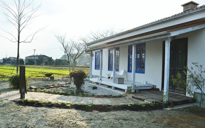 昨日は朝から夕方までフル回転で動いてました。朝、7時から だんご汁に入れるだんご作りだんごといっても団子では無い、平べったいうどんみたいなもの(ほうとう)8時半 だんごの元を持って畑へ行き、オッサン達がすでに大鍋を薪でグラグラと温めていたのでそこへ・・だんごの元を伸ばしながら入れました。野菜を買いに来てくれた人や通りかかった人に声をかけて食べて頂きました。「美味しい、美味しい」とおかわりしてくれた人も沢山居て、私は嬉しい、嬉しい♪ 作ったかいがあると言うもの。大鍋に二回分だから・・最後は通りかかった野球部(近くに大学のグランドがある)の男の子達を呼び止めて食べてもらいました。 自分達でおかわりしてた♪午後からは ヘアーサロンの庭づくり、お手伝いしてくれる人が沢山いたのではかどりました。土を運んでもらったり、レンガとまさ王を買いに行ってもらったり。とにかく、庭の形を先に造らないと 何も植えられませんからね。取りあえず 小道を造りました。レンガを置くだけでもいいのですが、今回はセメントで固定してまさ王を入れた後、凸凹が無いように平らにならした後、シャワーで水をかける、・・これだけでも固まるけど、一時間位したらもう一度しっかりと水をかけたほうがいいです。そして、今日は雨だったので・・尚更良かったと思うよ。ファイヤーポットは、オーナーさんの実家にあったもの 中々いい💛まだ中途半端ですけど・・今日の仕事はここまで素人の仕事だから、みんなでああだ、こうだと行きあたり、ばったりの庭造りそろそろ・・少しずつ植えつけにかかりましょう。これが一番肝心なのよね。丈夫でよく茂ってくれる植物アプローチの両側にはやっぱり、サギゴケの白がいいかな。リボングラスもいいし、ノースポールもすてがたいセラスチュームもいいわねぇ💛グラス系の植物も配したい、 こんもり系もいいなぁサロンの裏に水仙が沢山あるので、それも移植しようと思ってる。なるべくあるものを使っての庭造り これ大切ね。お金をかけなくても・・素敵な庭を作るそして・・後の管理が楽な庭丈夫で放っておいても綺麗に育つものグリーンと白い小花 調べなきゃ、セラスチュームみなさん、お勧めの植物があったら教えてね、ではまた明日ね。今日も来て下さってアリガトチャン♪ ロッタをポチっとすると嬉しいワン