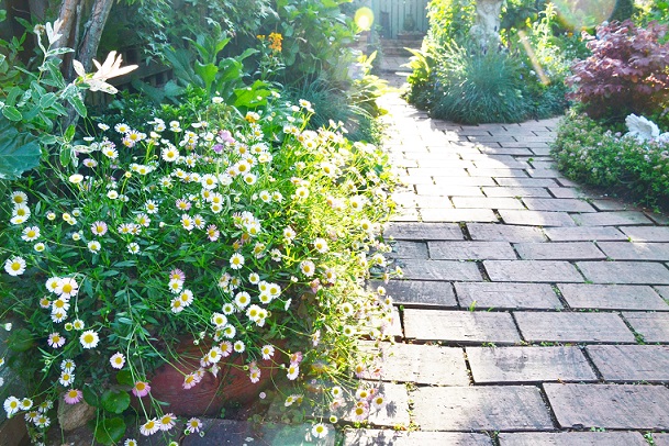 今日はガーデンの景色としては、とてもいい天気でした。うす曇り庭が一番綺麗に見える日です。先週オープンガーデンでしたが、雨が降った場合は8日の今日もオープンします・・って、告知してました。もしかしたら・・来られる方も居るだろうと・・一応、綺麗に片づけていましたら午前中6人 午後から6人来られました。ゆっくりと散策していただけたようです。うちの庭は小花が多いので・・ぱっとしないけど、お互いの植物がケンカしないので、目に優しいと思うの種から育てたバーパスカムを頂きました。私も、種を採って育ててみたいです。3人のお姉さん どのヘアスタイルが好き?やっぱり、クリーピングタイムのように 垂れてくるヘアのほうがなじんでるね。今夜は早めに寝る事にしよう。明日はオープンガーデンを手伝ってくれた花友さんをお礼の意味も込めて 庭巡りにお連れします。今日は夕方からずっと、ネット検索して効率よく周れるように時間と距離を考慮して 色々と練ってました。 どこに行くか・・ブログに載せてもいいって庭主さんの許可を頂いたら明日アップしますね。 素敵な所ばかりですよ~♪いつも応援ありがとうございます。今日も気が向いたらよろしくね。人気ブログランキングへ