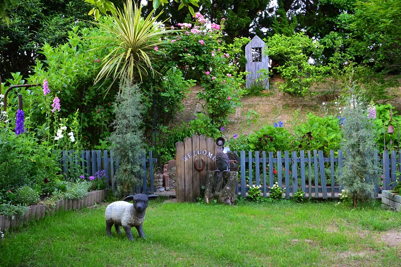 いつもの日々に戻って・・ゆったりした気分で庭を巡る色々と気づく事がある・・今更だけど本当に、オープン前の2.3日は 気持ちに余裕が無くてバタバタだったレウイシアこれなんて、前日に植えたもんね~。ヘンリーヅタの勢いが凄いです・・一株植えてから3.4年ですが塀を覆い尽くし・・入り口のアーチの上まで来てる。内部のほうまで・・・でも、緑は好きだからいいんです!ガーデニングを始めた頃の庭は・・花、花、花ばかりだった。花が多ければ・・それがガーデニングと思ってたかも・・今、ここまで書いてて、過去ブログを見てたの、下の画像 8年前のこの場所を見ると、まるでチンドン屋みたいです雑貨やオーナメント・鉢物を飾り過ぎてました。その頃の私・・・これで満足してたんでしょうね。それから、色々な方の庭を見せて頂いて、学んで来ました。今は木々が育ち、丁度いい日陰を作ってくれてます。オープンガーデンでは・・飾り物もみなさん、写してましたね。雑貨と植物って・・似合うと言うか、合わせ易いよね。雑貨は意識して・・増やし過ぎないようにしてます。オープンガーデンは済んだけど、これから、まだまだ 色々な花が咲き景色が変わってきます。デルフィニュームが咲き始めた・・・皆さんが来られた時は青いサクランボだったけど、一日でオレンジ色に! 明日は赤くなってるかもね。野鳥に食べられる前に・・摘まなくちゃ今朝、一番にゆうちょ銀行に行って、義援金を送ってきましたよ。これからも熊本や大分を応援していきます。オッサンが作った柵も階段シェルフも完売・・実は少し板にヒビが入った階段シェルフが不良品として、小屋に二つあるのですが、「一つは私がもらうよ」と言ったら指を二本立てるんですよ・・・VサインのOKかと思ったら2000円よこせだと!!ザケンナヨーーーーー!材料費半分は出してるんだぞー!あらヤダ、せっかく上品な奥さんだとか言われたのに、オッホホホ・・・・オッサン、許さんお仕置きに3年前の今日の画像を載せてやる。オープンガーデンなのに、この格好で車係をしてたの、これがいつもの私です。また来てね~おねだりロッタ いつもありがとう