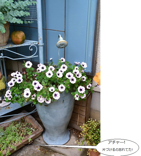 5月ももう終わり・・沢山の方に見て頂いた庭がやっと私の手に戻って来たって感じ見せるための庭が・・自分が楽しむ庭になる。気持ちの問題だから・・何も変わらないけど、もう時間に追われる事もなく、気楽なガーデニング生活を送れるわ、年に一度のオープンガーデンだけど、これがあるから、自分の庭を客観的に見る事が出来て・・進歩もあるのだと思う。お金も体力もかかるけど・・私には必要な催しです。さぁ・・来年のオープンガーデンまでに・・この庭がどんな変化を遂げる事やら多肉植物などの寄せ植えはは・・気持ちに余裕が無いと 遊び心のあるものが作れないな、梅雨に入ったら、多肉遊びをしよういつも居間から見える場所そして、居間の戸を開けた足元に・・・西洋アサガオと・・ブルースターをプランター植えにしてます。夏の日差しを居間に入れないために・・グリーンカーテンにします。ツルを昇らせるための「立て掛けセット」を注文してますが、中々届きません。自分で作れば良かったなぁ・・このペチュニァの後ろにも西洋アサガオを植えたの、アチコチに植えてるので、楽しみ~💛行方不明の男の子、今日も見つかりませんでした。誰かが、助けて保護してくれてるといいのですが・・コメント・・お返事かけてませんけど、楽しみに読ませて頂いてます。いつもありがとうございます。 バナーを押してね。