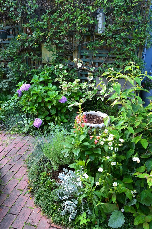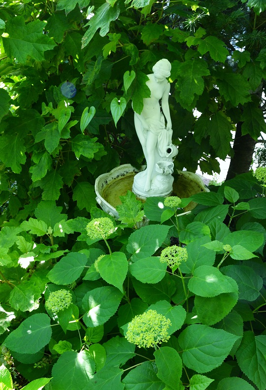 行方不明だった男の子が自衛隊の演習場で保護された!!よかった、本当に良かった!怪我してる様子もなさそうだし・・良かった。この5日間どう過ごしていたのか、寒かっただろうし、お腹もすいていたでしょうね。どっちにしても・・置き去りはいけませんね。生きてて良かった。----- アナベルのある風景 -----アナベルが綺麗になってきました。やっぱり、アナベルが一番好き、ここは日当たりが悪いので・・まだグリーンボールだね、こちらは朝日と夕日が少し当たる北向きの場所少しずつ・・白くなってきてる。小道ガーデン、ここは午前10時位から午後2時頃までだけ日が射します。女神像を囲っているのは普通のアジサイ・・葉っぱだけ女神像の足元・・お気に入りの植栽です。朝、起きたら・・一番に 水遣り 一時間前後「とと姉ちゃん」の時間まで・・もしかすると、一日で一番楽しい時間かもしれません。蚊は出ないし・・空気はひんやりと気持ちがいい草花も一番 綺麗な時間帯です。ミムラスは夏に元気な草花で、クリーム色を選びました。ミムラスは派手な花色が多いけど、派手は嫌です。最近のお気に入り草花ふわふわの銀葉の枝ロータス・コットンキャンディ苗:寄せ植えやグランドカバーにぴったりな脇役ですが、夏に強く・・これからの季節にぴったりです。どなたかのご質問に・・鶏のオブジェはどこで購入しましたか? とありましたね。7年前・・イギリスのアンティーク街で購入しました。お肉屋さんの看板だったものかな?・・いくらだったか・・忘れましたが 外に置いてるので足が錆びてきました。錆びてもいいんです、・・私が庭を楽しめる間は庭に置いときます。大切に大切に・・家の中に置いてても仕方ないです。いつか私が朽ち果てる時、このオブジェも朽ち果てる・・それでいい、それで本望 だから・・お庭に使ってと・・花友さんに頂いた雑貨は・・本当に庭に置いて楽しんでいます。それを花友さんは喜んで下さると思っているから・・庭の雑貨って、・・少し汚れてたり、錆びてるほうがなじむよね、歴史のあるものが庭にある事で・・そこに時間の奥深さがプラスされたり、味わいが出てくるような気がするのです。私の実家は養鶏業を生業にしてたので、鶏雑貨が気になるんです。庭にある 他の鶏も見てね、これもイギリスのアンティーク さぁ、もうすぐお昼です。畑からオッサンが「腹減ったー」と帰ってきます。野菜たっぷりの焼きそばでも作るかな・・その他にも色々と育てているようです週の半分は畑にどっぷりハマって、亭主元気で留守です。保護された男の子、本当にたくましいですね。行方不明になった夜に自衛隊の小屋にたどり着いたとか・・最悪の事を想像していたので、本当に良かったですね。コメント・・お返事かけてませんけど、楽しみに読ませて頂いてます。いつもありがとうございます。ナナは庭でも、放してたら・・心配だな バナーを押してね。
