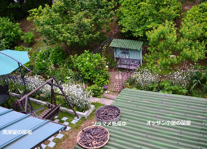 今日はパソコンの調子が悪くてちょっとだけの更新です。梅雨入りしてから予報が、変わりましたね。しばらくは曇りがちな日がつづく予報になりました。ガーデニングには最適ですね。それにしても 一日雨が降っただけなのに・・のっぽな草花は倒れて、木は茂りまくりです。ヤマモモですが、成長がとても早い刈り込みしないと・・日陰ばかりになりそうよ。このガーデンテーブルの手前のアサガオですが、つるがのびほうだい今日 やっと、つる植物栽培セットが届きました ゴーヤなどのつる植物で 夏の日差しを遮り、収穫も楽しめる緑のカーテンオッサンひまそうにしてたので(パソコンでトランプゲームしてた)組み立ててよ・・と言うと ワンコの散歩に行ってしまったよ。結局 夜になって、私が一人で組み立て・・部屋に転がしています。明日 設置します。あと半年で本当に仕事を辞めて家にいるようになるけど、ごろごろなオッサンになるんじゃないかと・・今から心配釣りや畑があるから・・大丈夫だとは思うけど、今日テレビで 高齢になっても厨房で働く女性の事がでてましたが、人手不足って事もあるが、生き生きと楽しそうに働いてていいなぁお給料のためだけじゃなく、必要とされて働くことって いいですね。昨日のコメントでガーデニング情報を色々とありがとうございました。メモしときました。今日も来て下さってアリガトチャン♪ ロッタをポチっとすると嬉しいワン