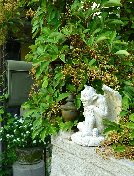 暑い夏、真っ盛りです。そろそろガレージ下に子供用プールを出そうと片づけておりますが、ついつい・・板壁の 雑貨コーナーに気をとられて はかどりませんわ。このコーナーは・・多肉植物がよく育ちます。さびさびの缶が植物といい感じに相まっております。ここは ガーデンカフェコーナーシンバラリアこの木枠・・花屋さんで捨ててあった木箱(すでに朽ちかけていた)この板壁を作った時に同じ色にペイントして使って来ましたが・・いよいよ・・ダメみたいです 手前の下なんか外れかけてる。一番向うは外れて・・落ちた跡 一枚板が残ってる状態板壁って・・・DIYとしては とてもお勧めアイテムですよ。狭い場所でも・・板壁がある事で 楽しめる事がいっぱい板壁を設置するだけで雰囲気がガラっと変化します。ここは 上の画像と同じ場所 板壁を建てる前の状態です。背景のラティスはそのままに残して、その上から板を張りました。右半分は・・レンガとまさ王で固めて・・手入れが楽になりました。「外からの視線を遮る事が出来る」壁は 重要です。 せっかくの自分の庭なのに 外に出ると、道を歩く人から見られる自分の庭なのに、他人の目を気にして ゆっくりと過ごせないこんな事 ありませんか?居間のカーテンを開けると・・・道から丸見えこれ、嫌じゃないですか?板壁にしてから・・庭に出るのが とても楽しくなりました。自分だけの空間 自分の時間 遊びの空間家って一生をかけた高い買物ですから・・狭い家と土地でも、楽しまなきゃ、もったいない。 そんなこんなで34年素人ですが レンガ積み・ペンキ塗り・DIYで遊んでます。一番上の画像で行くと・・左奥に行くと、狭い通路の横にやはり、狭い花壇を造って・・日陰に強いシダ類と羽衣ジャスミンを植えています。このジャスミンが今年は茂って・・花も咲きいい香りがしています。居間に毎朝、太陽が射し込んで 夏はとても暑かったのですが、今年はジャスミンで日陰が出来て、助かってるわただ・・このジャスミン お隣のお庭にまで茂って・・迷惑をかけてると思うの。時々・・お隣に行って、カットさせてもらってるけど、追いつかない・・ホント、ごめんなさい。私が庭に居る間、ずっと、「ウォォォォーーーーン」と哭き続けるナナあんまり、哭くから・・庭に出してあげるけど置いた場所からちっとも動かない散歩の時は、必死で歩くくせに 庭は好きじゃないみたい。そんなナナが可愛くてならないオッサンは・・散歩の途中すぐにナナを抱き上げて・・ナナの散歩を邪魔する。歩きたくてたまらない ナナです。私が嫌いな坊主頭なので 一本長い毛を付けてあげたった。サングラスとモジャ髭にしたのは・・身ばれしたらいけないのでね、 決して 嫌がらせではありません。こんな事されてるなんて、本人は知らないので 教えないでね。みなすわーーん、明日も来てね~ン♪のんべぇロッタの お腹を押してみてね