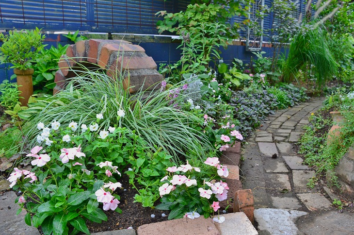 今日から3日間程・・曇りの予報だったので、ガーデニングが思いっきり出来るぞーー!と張り切っていたら・・・雲は少しはあるものの、蒸し暑い一日だったよ。外の日陰で36度近くあった。いつものように・・朝涼しいうちから完全装備で庭仕事 開始向うが見えないほどに生い茂った木々をカットアジサイや下草が茂り過ぎた花壇・・カット、カット、毎日、部屋から見えていた、ジャングルが消えて、満足、満足数日前から手入れをした小道ガーデンに 牛堆肥を入れて耕し・・・花を植えました。安い花ばかりですけど・・今は珍しい花を植える事よりも・・夏の暑さに強い花 目に優しい花ばかりを選びました。本当に安くて、2ケース(48ポット)で1300円しなかったのよ。日々草ポーチェラカは挿し木て容易に増えるので、地面にいっぱい挿しました。松葉ボタンも挿しましたよ、 どちらも白です。毎日の暑さで発根するか・・心配ですけど、毎日の水遣りで頑張って 発根してもらいます。3日間ほど、雨が降ってくれたらなぁ~・・・ニシキザサイネ科/オプリスメヌス(チヂミザサ)属とても良く広がって・・下草にもいいし、ハンキングにしても良さそうです。ネットで見ると1ポット1800円もするけど、あるお店では150円でした。日頃から色々な花屋さんを巡って一般的な値段を把握しておくといざ、いい物を見つけた時は お得な買物が出来ますね。花屋さんも商売だから・・少しでも高く、沢山売りたいだろうけど、うち等 小市民のガーデナーは・・少しでも安く、沢山買いたいしレアな草花も色々と欲しい 本格的に 年金生活になってから・・ガーデニングは贅沢な趣味と感じるようになったよ。それでも、ガーデニングは大好きだから 続けるけど、種から育てたり、花友さんと交換したり・・挿し木・株分けでやりくりしていくしかありませんね。そうそう・・今年は種プレゼントがありません。庭を荒れ放題にしてたのもあるし・・今年は私、色々とダメでしたね。秋に向けて ボチボチ・・頑張りますわ。コメント・・お返事かけてませんけど、楽しみに読ませて頂いてます。いつもありがとうございます。押してくれると 嬉しいワン!人気ブログランキングへ