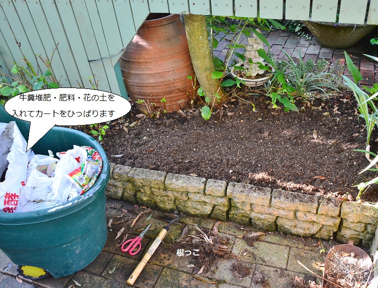 昨日から時々、小雨が降ってくれます。地面に浸み込むほどではないですが、嬉しいですね。本格的な雨がずっとふってないためか・・土がアルカリ性になっているようです。コメントいただいた中で、だるま姫さんから土の酸性度はどうしたらわかるのでしょうか?とありましたね。一番わかりやすいのは・・アジサイです。庭に植えたアジサイの花色が青いなら・・酸性ピンク色なら・・アルカリ性だとおもいます。我が家では、青色アジサイを植えてもピンクになってしまいます。日本は雨が多いので、弱酸性の雨で土壌がどうしても酸性化してきます。花を育てるうえでは・・あまり支障はないと思いますが、あまり酸度が高いと育ちにくい草花もありますので、ph5~7位が一番育てやすいのではと思います。土壌酸度はpH値で表され、pH4~6を酸性土、pH8~9を アルカリ土といいます。pH ペーハー検査は・・リトマス試験紙でも計れます。私は・・熱帯魚の水槽用で売っているもので調べています。調べる範囲が狭いかも・・乾燥土壌20gを水道水50mLに溶いて試験紙をつける薄いグリーンの中性が一番いいのですが、アルカリ性が強くなってます。酸性の場合は・・薄い黄色から赤っぽくなってきます。 フセンタイプとロールタイプなど色々あります。近くのホームセンターなどにあると思います。pH4以下なら・・苦土石灰などを庭土に混ぜ込むのもいいかもね。素人の調べですので・・心元ないですが・・だるま姫さん・・参考になったかしら?何はともあれ、土づくり・・朝から頑張りました。作業前の土の状態これでは・・花を植えても、すぐにダメになるでしょう。水はけは良すぎるし・・肥料をあげても流れてしまいます。そんな花壇を・・改良します。よーく、耕して 小石・根っこなどを取り除いた後にバーク入り腐葉土を入れてもう一度 よーく耕しました。保水性・保肥性・排水性・通気性がぐーんとアップしました。昨日の記事と重複しましたが、自分がやってみないとね。バーク入り腐葉土=バークとは樹皮 広葉樹の葉を混合した品を言うもしかすると、普通の腐葉土のほうが・・質がいいかもしれません。後は堆肥を入れてまた、耕します。オッサンがいつも畑用に牛を飼ってる牧場からトラック一杯仕入れるのでそれを分けてもらいますが 発酵・熟成してるので全く臭いません。同じ場所でも、カメラアングルを変えると景色が変わりますね。 ポーチェラカを見て欲しい時はこっちね庭に花が少ない今の時期はどうしても・・アップのほうが見栄えがいいもんね。離れて撮ると・・雑然としてくる手前のレンガは土留めと水やりの際 水が逃げないように。秋の庭・春の庭はとても綺麗になりますが・・今の時期や2月3月のお手入れ次第なんですよね。庭のデザイン・植栽だけで綺麗になるのならいいけど、庭を維持するというのは、とても大変な作業がある。雑草取り・追肥・土の改良・剪定・病気対策・・・etc誰も見に来ない時期・・ついつい手を抜いてしまい結果荒れ放題・・ますます おっくうになってしまった、実は・・・ここに載せる画像も・・恥ずかしい場所は見せないようにしてます。少しずつですが・・・頑張って、再生させなくちゃね。これから、これから・・ ここに植えたバラが二本枯れました。明日はここを何とかしましょうかね。台風10号 迷走が止まりません。なんだか強烈になってるとか・・進路方向に目が離せませんね。よろしかったら ポチッと応援お願いしますね。おねだりロッタ いつもありがとうございます。