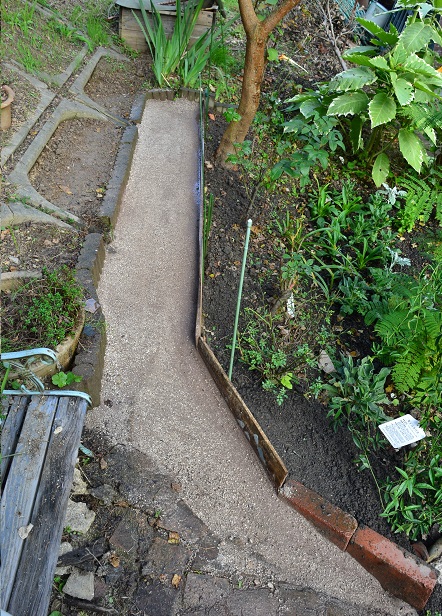 今日は片道二時間の姉の庭へGO!9月23日に行ってから40日ちょっと、オッサンが耕した畑には立派な大根や白菜が育っていました。オッサン「俺が作ってる野菜よりも出来がいい」とビックリしてた。まず、行ってから柵を仮設置・・・私はアプローチを造ります。オッサンはこの後 畑の周り 全体を草刈りしてました。姉には 家の周りにある雑多な物を片づけてもらいます。これをすると、しないとでは・・景色が随分と違うしリ・ガーデンする気持ちも違ってきます。庭を綺麗にしたいけど、どうしていいかわからない・・こう思っている方は沢山いると思うよ、そんな人はまず雑多な物(要らなくなった道具・使っていない鉢・棒切れ・石 etc)そんなのをみんな片づけると(捨てるか、見えない場所にまとめる)不思議とやる気が湧いて・・次にどうしたらいいかわかってくるよ。部屋もそうよね、おしゃれなインテリアにしたいと思ったらまずは断捨離・・シンプルが一番 スッキリしてからスタートね。実は・・私んちのガレージ下や家の周りには・・人に偉そうな事が言えない位雑多なものであふれています。 ナハハ今、毎日 それを片づけながら 庭の手入れをしている途中です。オットーーー 脱線しました。姉のガーデン 今日はとりあえず、小道造りを頑張りました。途中経過を写す余裕が無かった朝から午後3時近くまで頑張りました。固まる土「まさ王」とレンガと・・土中から出てきた欠けた瓦で作りました。アプローチの両側にレンガを敷き、「まさ王」をその中に2センチほど入れその上に欠けた瓦をパズルのように並べ・・また更にその上から「まさ王」を入れて箒で綺麗に漉き込んで行きます。その後、上を歩いてガタつきが無いように踏み均し・・もう一度掃いて水を散水しました。後は 一時間後にもう一度 散水したら・・ガチっと固まります。明日の朝は・・水で余分な「まさ王」の砂粒を洗い流すと・・・瓦が模様のように出てくると思うけど、その様子を見れないのが残念。この小道は手前の方へ続き、家の横まで施工しました。前よりも幅広になった感じで通り易くなりました。以前は・・ここは道がくぼんで居て、広さの割に狭い感じがしてました。小石もゴロゴロあったし・・一日仕事でしたが、やりがいのある充実した日になりました。この姉には苦しい時に助けてもらった恩があるので、少しはお返し出来たかも・・自己満足お昼はすき焼きをご馳走になり、お土産まで頂きました。一番 うれしい物です。ナナに手編みのセーターを二着ぴったりサイズです!!姉は二度しかナナに逢って無いのに、凄い!私は毎日そばに居るのに、つんつるてんの服しか編めてません。手編みのざっくり、ふんわり感が 贅沢だわ~💛♡ありがとう~♪さ、また明日から自分の庭で頑張ります。コメント・・お返事かけてませんけど、楽しみに読ませて頂いてます。いつもありがとうございます。押してくれると 嬉しいワン!人気ブログランキングへ