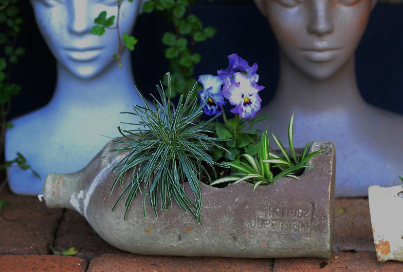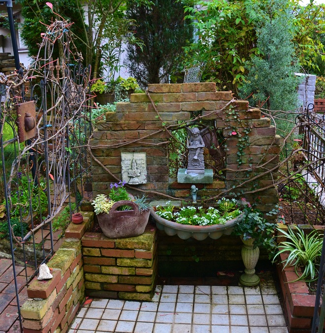 明日は鹿児島からのツアーで沢山の方がお見えになります。色々なお庭を巡ってこられて、私の庭の後はゆくはし植物園たぶん、買い占める勢いで燃えるでしょう♪今の時期の庭は来春のための庭づくりで・・花はまだ成長しておらず植えたばかりの苗の状態です。春のように緑がワサワサと茂って無く、花も少ししか咲いてません。せめて・・お手入れされた状態だけでも見ていただきましょうかね。ヘンリーヅタがバタバタと散り、見苦しい状態になったので、残りをみんなハサミでカットしまくりました。くねくねまがった枝だけが残ってます。ま、こんな事もありますワイ、ガレージの板壁ここは雑貨を飾るために・・板壁を張り巡らしております。鉢が汚れてる・・明日拭いとかなくちゃ、ガレージの板壁にする前は5年前はこんなだったのよ。植える場所が決まるまで・・ここに置いてます。根っこが出そうな植物を水挿ししています。花はありませんが、お気に入りの寄せ植えです。どの植物も一番いい状態で育ってる昔はゼラニュームやベコニアばかり育てたっけ・・挿し木をすると、すぐに発根するので 増やすのが楽しかった。昔の園芸雑誌を見ると、やっぱりそうでした。プランター植えのゼラニューム・ベゴニア・ペチュニア・パンジーばかり赤・黄・紫・白・ピンク・・・ありとあらゆる原色の花をズラーッと並べて花の数を競っていた感がある。・・・園芸と言ってた時代。こんな渋い寄せ植えをするようになるなんて・・・年齢のせいもあるのかしら?今日も一日、ガーデニング三昧幸せな事でございます。いつも書き込みありがとうございます。お返事出来てないけど、私も訪問してポチさせていただいています。良かったら、お帰りに応援お願いしまーーす花・ガーデニング