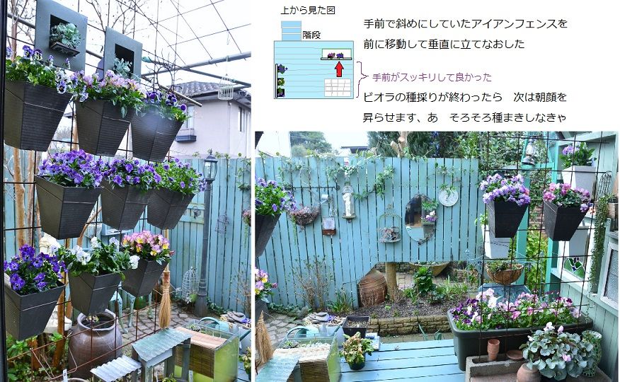 私の庭のこだわりは色です。 色のバランス 統一感など庭つくりは・・景色づくりだと思っています。以前は珍しい花など見つけたら、高くても買っていましたが年金生活になったら そうもいきませんね。でも、色にこだわる位なら・・年金生活でもなんとかできます。でも、今年は交配種からのビオラ苗を植えてるので、どんな色が出るかわからない バラバラです。でも、ビオラの季節が5月頃までなので その後の景色はブルーとグリーンを中心に 白・ピンク・シルバーを添えて行きます。育種家 ROKAさんに頂いた種から育ったビオラなんとも大人な雰囲気の色 何色って言うんだろう?こんな色の洋服が欲しいなぁって思わせる深い紫色これは健康に育っているので 種も沢山とれそうです。うさぎちゃん系 これもROKAさんからのかもしれません。ROKAさんは本当に惜しげもなく、知恵も種も分けて下さいました。秋から2月頃まで 育種&交配の講座をアチコチで開いて指導して下さってます皆さんも機会があったら是非受講されるといいですよ。ビオラの種って 一つで60個以上は詰まってそうです。弾けた後でも 運が良ければこんな状態で採種出来ますがやはり、弾ける前 種の色が枯れ色になったらすぐに採ったほうがいいですね。お天気のいい日は尚更 弾ける前に と見回りを欠かせません。もうちょっとでトイレットペーパーもマスクも売り切れが解消されそうですね。でも、マスクのほうは しばらくは手作りで頑張ります。今日はリード(クッキングペーパー)一枚で作りました。角を折って重ねるので口と鼻の部分は三枚分の重ねがあります。使い捨てマスクのノーズワイヤーとゴムを捨てずに利用して要所、要所は両面テープでとめて 両側は縮めゴムと一緒に縫いました。横長くて顔がすっぽり隠れて 隙間が少なくて良いです。市販の物より、先日のコーヒーフィルターで作ったものよりもいいかな。皆さんのお庭はどんな景色かしら? どんな景色が好きですか?見たいな~。コメントだけでなく画像も載せられたらいいのにな。皆さんの応援ポチが 励みになっています良かったなと思った方、応援してね。