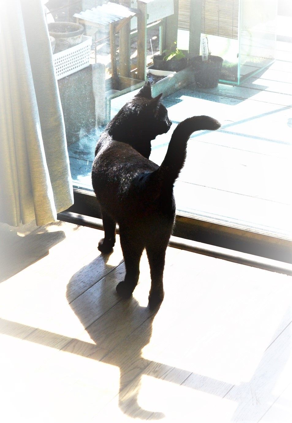 いつも朝起きて部屋のドアを開けるとミミ🐈が待ってるのですが、今日は待ってなかったの。階下に降りるとオッサンは釣りに行って居ないし、ナナがソファで寝てるだけ居間からテラスに出るガラス戸が10センチ開いてる!!あ、もしや!! 「ミミー!」家じゅうを探しても居ません。逃げたんだ・・オッサンが開けっ放しにしてたんだね。とこの時は思ってた日頃から 外に出たそうにしてたもんね。いつでも帰ってこれるように 裏口のドアを開けて朝 8時前 モコとナナの散歩に行きましたよ。 久しぶりに霜が降りてます。ミミ 寒いだろうな。どこかで捕獲されたり、車にはねられたりと、悪いほうへ悪いほうへと考えて心配でたまりませんでした。やっぱり、首輪をしてたほうがいいのかな。飼い猫とわかれば、手も出せないだろうしでも、首輪が命とりになるとも言われてるし午後になって あれこれ考えてても落ち着かないので土手ガーデンの小道造りや手入れをしていたら🐈「ミャーン」振り向くと、小屋の前にミミ🐈が!!アラ♪ と言うと、ミミ🐈は小屋の床下に潜り込んでしばらく 出て来なくなりました。 チュールで誘惑して ようやく捕まえましたけど良かったーーーー♪その後 テラスでビオラの手入れをしていたらミミ🐈がガラスの向こうにやって来て・・おまえ 今朝・・・自分であけたのか!!そういえば、私がトイレに居る時 カリカリとやるし少しドアが開いてると、外側から黒い前足を入れて来るもんね。これから暑い季節になって 網戸にした時が心配だな。26日から雨だと言うので 25日のうちに種採りをしておかなくちゃ鉢植えにして、大切にしているつもりだけど 種があまりないのよね。土手ガーデンや小道ガーデンに地植えしたビオラには大きくてプリプリの種が 沢山ついています。なんでだろう・・来季は鉢植えをやめて、地植えにしよう。って 植える時に 覚えてるといいけど・・ナハ今年はこのヒメハナビシ草の種を採りたい。別名ではミニアチュア・サンデュー左下の花びらに 蚊がとまってる!暖冬だったから ちょっとした水たまりにはボウフラが湧いてるしこの時期の蚊はまだ刺さないけど 早すぎるよ。寒さに強く 暑さに弱い ・・でしょうね。半日陰だと綺麗に咲いてる。6月まで咲き続け 夏は暑さで枯れる・・らしい。今、土手はチューリップ&チューリップで可愛いガーデンになっています。ここは最近咲き始めた場所ですが 土手は早くから咲いたのでもう終わりかけてます。原種系のチューリップは植えっぱなしで毎年出てきます、球根が小さいので 土手を耕す時にアチコチに散らばってます。咲いたら可愛いよ。3.4年前 ハウステンボスで花売りのお手伝いに行った時、チューリップ球根専門店で買いました。土手のチューリップが咲き終わったら どうするかな。ちょっと大人な雰囲気のガーデンにしたい。グラス系中心で行きたいけど 短期では無理ね。明日からの雨を利用して 色々と移植作業を行います。トレイルカメラにアナグマは写っていませんでした。でも、またきっとやって来ると思うので持続してカメラを設置しました。2019.11.10 捕獲機で捕まえた時の画像遠くの山に捨ててもらいました。その時、トレイルカメラにはもう一匹外側に居た気配ありそれが またやって来てるのかしら?いつも嬉しいコメントをありがとうございます。そして、知らない事・アドバイスなど 沢山助けられています。これからも私の井戸端会議に参加して 日々の徒然を残して行って下さいね。人気ブログランキング良かったなと思った方、応援してね。