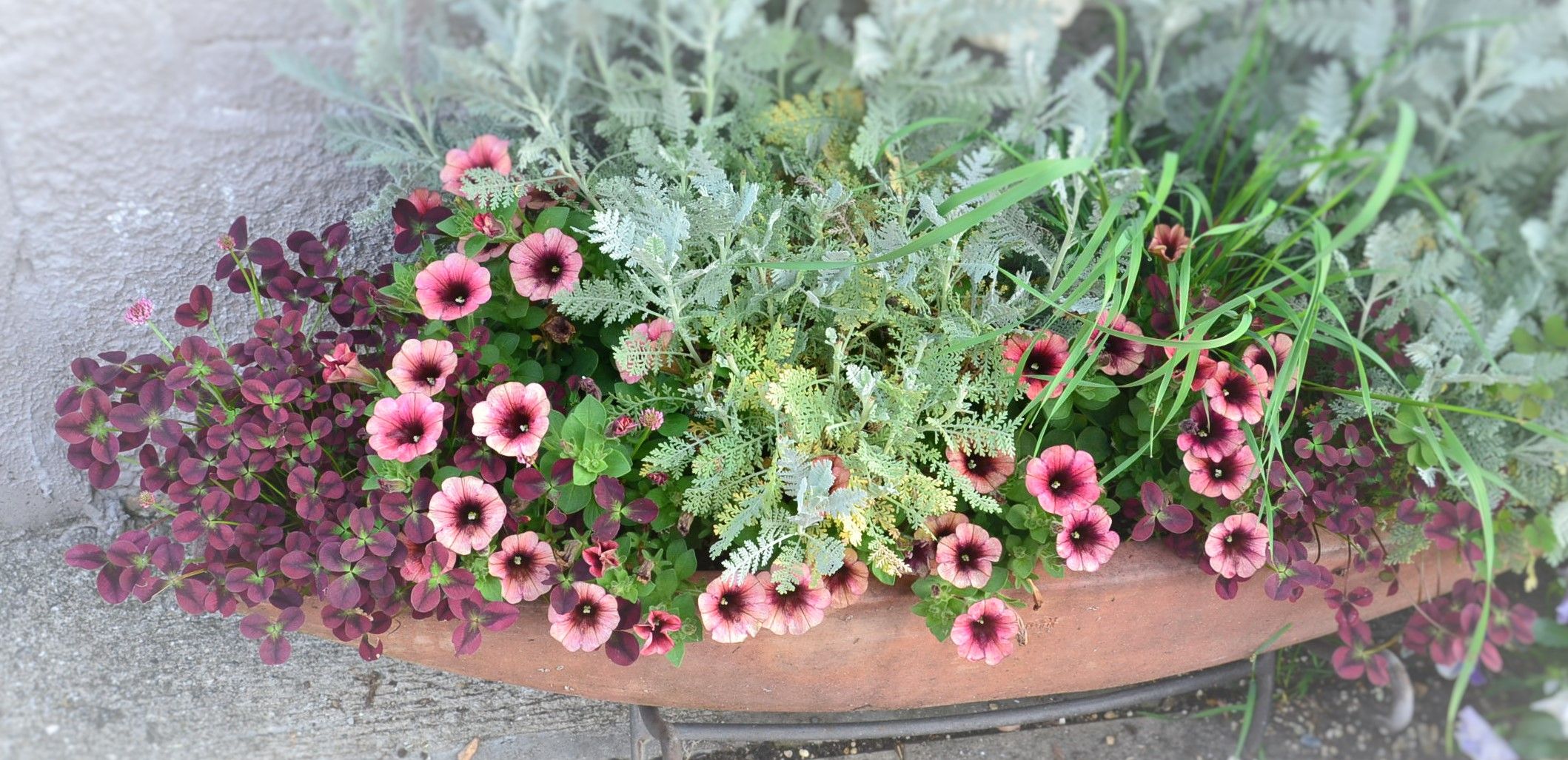 寄せ植えのダスティミラーは・・撮影の後、カットしました。