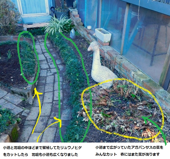 土留めに使ってるリュウノヒゲは広がり過ぎてたからろろ