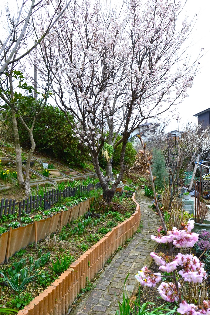 お天気が良かったら青空とピンクの🌸でキレイだったのに 残念。