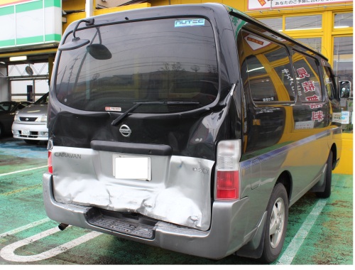 年の瀬に事故に遭って車が損傷した際の写真が見つかりましてご披露致します。信号が黄色になったのでブレーキをかけて停止線を出てしまい、あらら・・と思った瞬間の出来事でした。私のキャラバンは走行距離と年数で車両の価値が29万円でして、保険会社としてはこれ以上出すことはまずありません。で、近年、旧車を高価格で買って乗ってる人が事故に遭った際にトラブルになりやすく、保険会社として超過分を担保する特約を設けてありまして、超過分は50万円が上限だったりするんですが、費用としましては千円しないレベルです。今回の私の事故の修理は計ざっと48万円掛かりまして、追突してきた相手方は特約を契約していなかったので19万円の自己負担になるわけです。保険ですので万一の備えはよりしっかり備えておく事が大切なのだと身を持って経験しました。責任比率は相手方の責任が100%ですので争う必要が無く、キッチリ払って頂いて後部ゲートの眺めは新車そのものになりました。あれから信号で止るとき後ろの確認をしています。