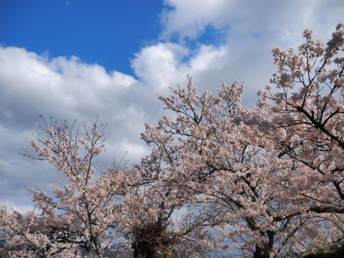 本日は隣の空き地で年に一度の狂犬病予防の集団接種が行なわれ、悲鳴に近い犬たちの鳴き声で、それはもう賑やかでした。いつも桜の散った頃に行なわれる犬には迷惑かも知れないけど、犬も立派な家族の一員であり、予防の輪の中に入って過ごす良い国です。で、しつこいようですが、散る前の桜がまだ残っていますので、何枚か並べてみます。後ろ向きで走って帰ります。