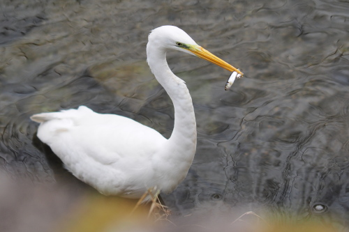 市内のとある場所に水辺の宝石と呼ばれるカワセミ(翡翠)が来ています。ですので、用事も兼ねて撮りに行ってまいりました。こんな感じで魚を探しています。所どころに刺してある木に止っています。ダイブして飛び上がった姿。ダイブで水から上がる様子その2コマめ。その次ぐらいのコマバックが黒だと映えます。で餌にありつけましてこの後丸呑みでお食事終了です。ダイブで突っ込むところはブレブレで見せられません。画像クリックで幾らか大きくなりますが遠いのでトリミングしまくっています。本当に綺麗な小さな鳥でしてどぶ川に飛び込むのが申し訳なく思うぐらいでした。