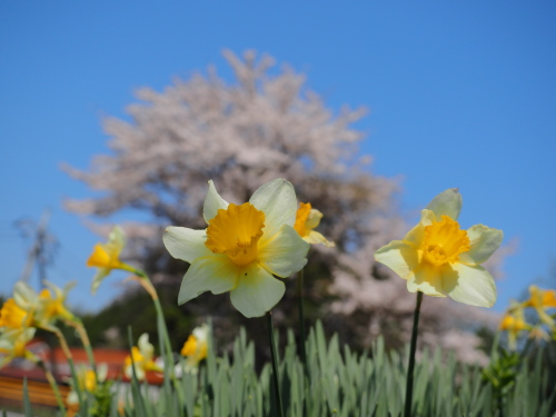 列島はGW真っ只中で、FM山口のモーニング・ストリートのパーソナリティは「GガンバレW私の毎日なんです。」って話してました。ガンバレ・私の方々のお陰で過ごせるGWの列島です。撮り溜めた桜もおしまいにしたいと思います。水仙の後ろが桜です。 昭和57年に廃校になった校庭です。 十種ヶ峰の残雪を入れたくて撮りました。近くで咲いてた枝垂桜です。今年の桜は終わりました。