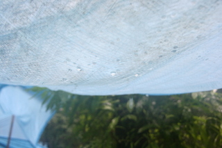 あめ。深夜から降り出した滝のような雨が、私達を襲いました。ジャブローのおかげで、スカウト達は快適・・・と、思われたが、廃材利用のため、雨漏りがあって今一の感じ。リーダーは相変わらずブルーシートの海の中にいるんだから・・・。焚き火の講習会。火の起こし方を教えていますが、薪が濡れているのでうまく行きません。でも、着火しないと昼ご飯が食べられません。がんばれ~~。泥だらけになりながら薪を作っています。そのがんばりは、きっとむくわれるよ~。力を合わせて火をおこしていきます。そうだ、みんなでがんばらないと、雨の中で着火はしないのだ。自然は厳しいのだ~。そんな焚き火でいただく今日の昼ご飯は、まきまきパンと五平餅。調理器具を使わない料理の実践です。本格的にパンを練っています。竹に巻き付けています。がんばって起こした火で焼いていきます。じっくりと・・・美味しく焼けたようです。良かったですね~。よく頑張りました!五平餅も美味しくできたようで良かったです。ご飯も美味しく食べられたのですが、大雨洪水注意報が出たとかでないとかで、1時間早めに帰ってきました。私達リーダーは、後かたづけで結局毎度の時間になりましたけどね。雨のキャンプは問題なくこなせるけれど、やっぱつかれる。ガックリと疲れました~。でも、今回のキャンプは大きなものの建設が大成功だったので、非常に満足です。リーダー本部もこれ以上の物を作り、ブルーシートからおさらばしたいものです~。