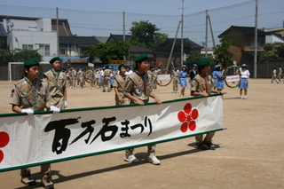 今日は、来週行われる「金沢百万石まつり」のリハーサルでした。晴天に恵まれ、気持ちのいい天気の元でのリハでした。本番もこんな天気ならいいけど・・・。この祭りでは、プラカード持ちなどが仕事になります。スカウト達はがんばっていました。この横断幕が先頭を歩きます。こんな感じでボーイスカウトだけのリハーサルが行われました。来週土曜日の本番が楽しみです。