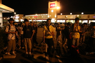 今夜は夜間ハイクでした。昨年の最悪の実績を覆すべく、スカウト・リーダーが一眼となってがんばりました。回もVS隊企画・運営で、プログラムが進みました。新しいイオン前に集合。各班で集まって作戦会議。どんな作戦を立てているのやら・・・。その後、スカウトはゴールに向かって22kmの道のりを歩き出しました。途中写真はありません。本物の警察官に職務質問を受けたり、ガソリンスタンドの真ん中で寝ている一を見かけたり、夜の街中で日頃見ないものを見てきたようです。ちなみに、21時~21時40分の間で出発していきました。
