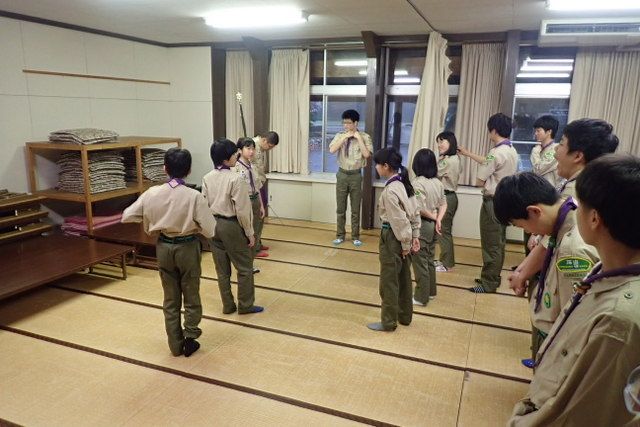 今日もボーイの合宿です。朝から土砂降り春の嵐。ハイキングだけど・・・心配です。行くけど。朝6時半から朝の集い。起きられなくて、今日は遅れてスタートです。隊長挨拶(^^)ハイキングの準備を調えて、雨のハイキングに出発です。元気に?出発です!!がんばって歩いております。でも・・・一班足りない・・・Σ(゚Д゚|||)新緑のどんでん山。薪小屋が倒れていました。あ~~~まずい・・・雨でビオトープは満水。無事にここまで来られました(^^)行方不明だった班も無事に到着。お昼はカレーうどんです(≧∀≦)めっちゃ多い。めっちゃ食う。おかわり中。焚き火でまったり。春蘭が咲いていました。春ですね~。無事に閉会式を迎えました。バス停まで歩いて帰っていきます。倉庫で片付けのベンチャースカウト。縁の下の力持ちです。たくさんのスタッフの力でなんとか無事に終わりました。私の立案の内容ですが、1人ではできません。みんなの力の結晶ですね。よかったよかった~。明日、現場入れなくて良かった。