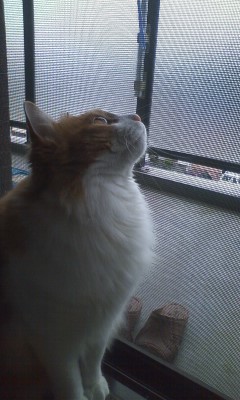 あまりにカメラを向けてたら、顔を隠されちゃいました(;_;) しかも「にゃっ!!」と一鳴きしてから… 我が家のワンニャン自己主張、激しっ( ̄○ ̄;)