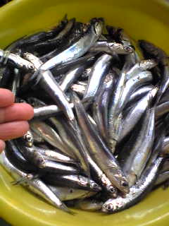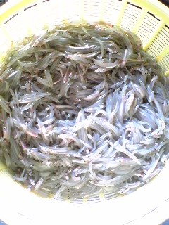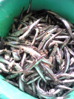 いわしの稚魚を頂きました。どうやって食べるのか全然わからなかったので頂いた方に聞いてみたら、「生」あとは「煮干」にするんだよと聞いたので、旦那さんに「煮干」にするってメールしたら・・・「生」で少しとっててって~残りは「煮干」に。初挑戦煮立ったお湯に塩をたぁ~んと入れて茹で、干しました何日か干してカラカラに乾けば出来上がり~!これまた自分は食べないんですけど、作るのが楽しそうだったので~イエローファットのくーぴーにもあげられません。もちろん、塩も入り過ぎてますしね。実家かな~?まずは、出来てみてからですかね