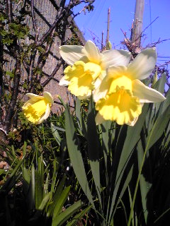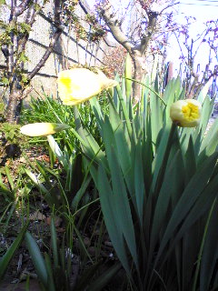 こんにちは水仙の花が咲きました~今はもっと咲いてきましたよ違う種類のモノもあるみたいで、次はどんなのか楽しみです旦那さんのおばあさんが水仙が好きで沢山育ててたそうです。後で仏壇にお供えしようと思います以前、アップした砂利から伸びてたチューリップ。蕾をつけてました今年の花が終わったら植え替えしてあげます!早く咲いた花が見たいなぁ~そして・・・ これまた名前がわからない花・・・ 我が家の庭でいち早く咲いてくれてました花が終わりかけ、葉っぱが伸びてきました。来年の開花までは名前、調べようと思います(笑)
