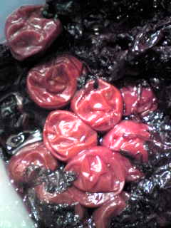こんにちは今日も良い天気でした休みの旦那さんをひっぱりだし庭仕事スッコプを使うような作業は旦那さんに任せたはずなのに・・・左わき腹をひねってしまったようで、張って痛いですなので、無理せず切り上げ、昨年漬けた梅干を出してみることに。梅干も一緒に連れてきたんですよ開けてみると、いい色♪きれいな赤に漬かってます♪一粒 ぱくっ。すっぱぁ~いしょっぱぁ~いん~梅干らしい~はじめて漬けた梅干は成功でした♪友人の母上に感謝ですね。今年もチャレンジしようかな~?でも作り方・・・ また友人の母上にご指導願おうかしら?(笑)出来た梅干、持って行って味見してもらわなくちゃっ!一緒に教えてもらった友人の梅干の仕上がりも楽しみだな~催促してみようかな? 鵄杏作
