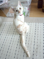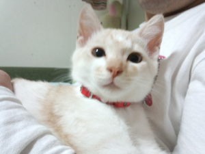 こんにちは(^O^) お陰様で、ちっちの傷の腫れも少し引いてきました。 嫌がらず薬を飲んでくれるので、とても助かっています。 3月末で自治会の役員も終わり、4月からはのんびりする予定でしたが主人の体調不良で休む間もなく8月を迎えました(´・ω・`) お盆くるじゃん!! 秋彼岸が終わらないと休めないような予感(笑) 主人の方も経過良く、心臓は通院も終わり、椎間板ヘルニアの処置した部分の定着がしっかりすればよいだけです。 軽作業なら仕事復帰もオッケーが出ていますが、なにぶん土木系なので、もう少し療養が必要そうです。 ムーンは少しづつ少しづつお利口になっていますが、夜中の大運動会やらンこhigh↑↑は収まることなく(´・ω・`) 引っ掻く事は減りましたが、今度は噛む噛む噛む!(泣) 要求鳴きも(泣) もう、くたくたです(´・ω・`) 有り余るパワーを散歩で発散させようと胴輪を試しましたが、びょんびょん怖いくらい跳ねてhighになられ断念しました。 もう少し先に再度チャレンジですね。 それでも、網戸に頭をつけて外をガン見している姿を見ると逃走が怖いので楽天ブログで仲良くさせて頂いているレザーポケットの革にゃんさんにファースト首輪を作って頂きました。 特注。わがまま言わせて頂きました。えへっ。 それが冒頭の画像の赤い首輪です♪ 子猫に負担の少ない7ミリ幅、ゴムの装着で何かの時は伸びる。 そして、首輪自体に名前と私の携帯の刻印を入れてもらってます。 首輪が外れさえしなければ迷子になっても連絡先がわかります。 とても軽いし、胴輪で跳ねまくったムーンでしたが、すんなり装着してくれました! 15~21センチに対応にしてもらったので、しばらく使えそうです♪ 革にゃんさん、ありがとうございました♪ 相変わらず、リンク貼れないので(笑)、レザーポケットか「革にゃんのお仕事ブログ」で検索してみて下さいね。 全く時間がない訳ではないのですが、ストーカー猫のお邪魔の手が活躍中でアップがなかなか出来ないでいます(笑) とにかく注目を集めたいみたいです。 洗濯物は畳んだ端から崩してくれます(T-T) あ~育児って、、、大変。 今日は石巻川開き祭りですが、今年は家でまったり休んでいることにしました。 明日はムーンの2回目のワクチンの日です。 充電しとかないと!(笑) あ、画像ではおとなしそうに写っていますが、虚像です(笑)