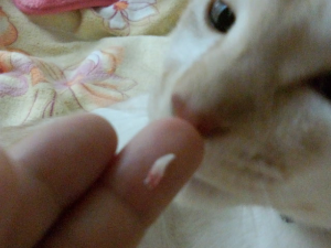 こんにちは(o^-^o) ゆうべは寝ない寝ない僕、なんなんだ?と思ったら歯がいづかった(納まり悪いって感じ)らしいです。 今朝、牙2本拾いましたv(・∀・*) うるさい張本人は疲れたのでしょう、爆睡しています。 いつになったら夜中の大運動会は終わるのでしょう? 牙も4本の生え替わったことですから大人の落ち着きが欲しいです(´・ω・`)