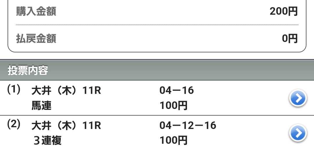 今日(木)も 地方交流(Jpn2)があるんですね!!昨日(水)の 無駄遣い(Jpn1)を 取り返すために...土日(サウジアラビアRC & アイルランドT)の 予算 を削ってまで...土日の 予算 を増やすために 懲りずに メゲずに チャレンジ します。(呆)楽しみな 月曜日(スワンS)の予算だけには手を付けません。(賢)(呆)2025年10月9日(木)大井11R 東京盃(Jpn2)◎ ④ コンティノアール○ ⑯ クロジシジョー▲ ⑫ ヤマニンチェロキ<馬券>「単 勝 ④」「馬 連 ④-⑫」「三連複 ④-⑫-⑯」◎ コンティノアール更に距離短縮です。1800mから1400mの距離短縮より...1400mから1200mの距離短縮の方が楽そうに思えますが...実際のところは 後者の方が厳しいような気がします。ただ、中央での距離短縮より...地方馬場での距離短縮なら 逆に 良いような気もします。恐らく流れには乗れるはず...序盤から 流れに乗れなかったら THE END の覚悟です。内々で流れに乗って最後の直線で馬群を割って 伸びて来い!(祈)○ コロジシジョー前走の敗因は 斤量差 と 枠順 だと決め付けます。当馬は 内枠 より 外枠 の方が 競馬 がし易いはず。いくら 外枠 が良くても 大外枠 は 行き過ぎの感もありますが...斤量56kg(前走比-3kg)であれば。(祈)▲ ヤマニンチェロキ勢いからすれば 当馬 が正解だろうと思います。ただ、3月から 月1ペース での 7戦目...そろそろ お疲れがあっても?...とも思えます。勿論、気にすべき馬たち(1・2番人気)が居ることも承知の上です。1・2番人気が 来ちゃったら 致し方なし の 覚悟 です。って... そんな余裕はないんですけどね。笑最初は「馬連」と「三連複」を購入。5分後に「単勝 も買っておかないと」... で購入。どんどん 土日の予算 が 減ってしまっております。やっぱり 依存症 って ヤツ ですかね。それでは。
