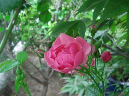 我が家の庭は、ナニワイバラの白から アンジェラのピンクに変わりました はなびらがほわんとしていてあま~い香り がただよって・・・かわいいヤツです