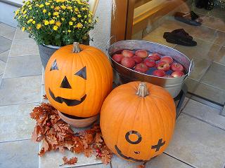 ハロウィンのいわれとおもてなしのテーブルセッティングなどホームパーティのポイントを習ってきました。収穫祭だとは知っていましたが、アメリカのお祭りだと思っていました。もとはケルト人のお祭りだったのですね。では習ったことを・・・ハロウィンとは、万聖節(11月1日で、天国にいる有名無名あらゆる聖人をたたえる日)の前夜祭です。日本のお盆のようなもので 過去に亡くなった人が、この日にはよみがえると考えられています。秋の収穫を祝い、悪霊を追い出すお祭りです。起源は2000年以上前のケルト人のサウェン・サワーン(収穫期の終わりと始まり、そして1年の後半の始まりを意味する)というお祭りだとか。さらにローマの女神ポモナの11月1日の果物祭り、カトリックの「万聖節」が一緒になりました。万聖節は、“All Saints' Day(Hallowmas)”といいます。そのイヴの日であることから“All Hallow Eve”→“Halloween”になったとも言われています。 この日は、死者の魂だけでなく悪霊たちもこの世にやってくるので、そのときに悪霊に魂をとられないよう、魔物の格好をして防ぎます。かぼちゃのランタンのいわれは・・・ハロウィン オーナメント 親子かぼちゃ「けちんぼジャック」と呼ばれる男が悪魔を騙したため、死んだ後、地獄に落ちることもできず、明かりをともしたカブを持たされて暗い道を歩き続け、あの世とこの世をいったりきたりしていることから、ジャック・オ・ランタン(ちょうちんのジャック)と呼ばれるようになったそうです。アイルランドでは、カブでちょうちんを作っていたのが、移民などによってアメリカに渡りかぼちゃとなりました。 ジャック・オ・ランタンも悪霊を追い払うためのもので、恐ろしい顔を刻んでろうそくを入れて家の前に置いておくと、悪霊を脅して追い払ってくれると信じられていました。ハロウィンの仮装パーティーなど各地で行われているようですが、まだまだ地方には浸透していないようです。お店でかぼちゃのケーキを見るくらい?【ハロウィンスイーツ1010】パンプキンパイとパンプキンケーキかぼちゃといえば、かぼちゃパイむかし神田精養軒でよく買ったかぼちゃパイ。今もあるのでしょうか。そぼくなかぼちゃの味がしてとても美味しかったです。
